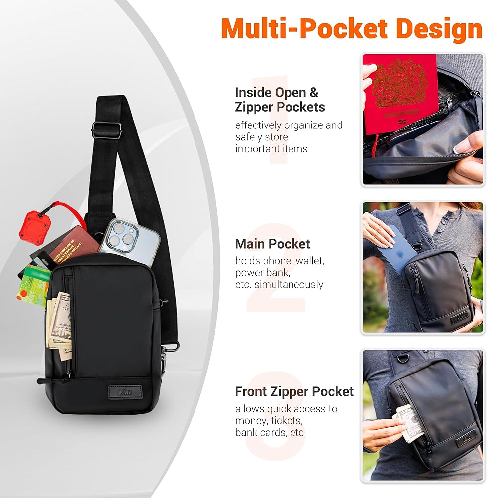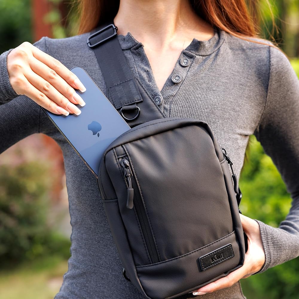 KIWIFOTOS Travel Phone Pouch for Crossbody Sling Bag for iPhone 17 16 15 14 Pro Max iPad mini 6 5 4 Nintendo Switch 2 Water Resistant Smartphone Zipper Chest Bag Adjustable Strap