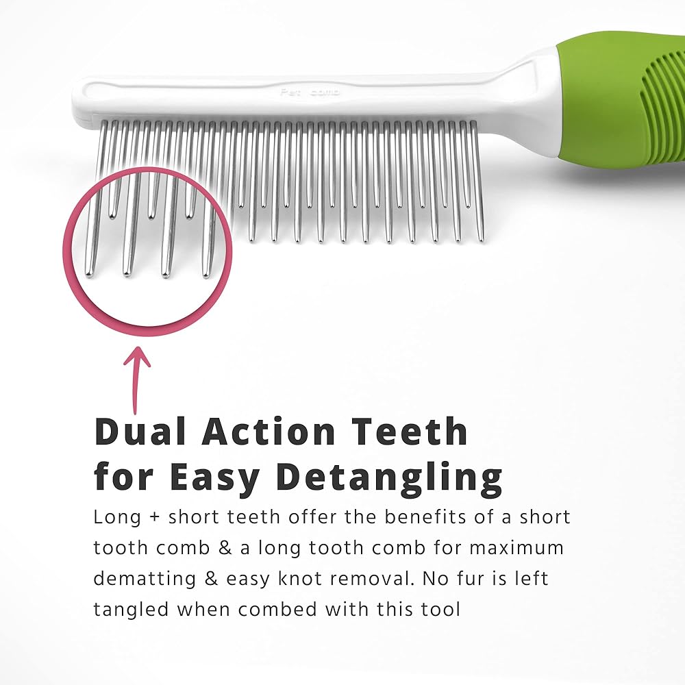 GROOMING TOOL #2: Long + short teeth offer the benefits of a short tooth comb & a long tooth comb for maximum dematting & easy knot removal.