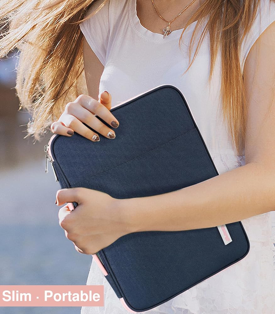 Premium Material:This tablet sleeve bag is made of high-grade polyester fabric, which is reliable and resistant to liquid splashes. Its thicker interlayer is designed for better cushioning and protection, effectively protecting your items from any scratches and being shocked in daily use.