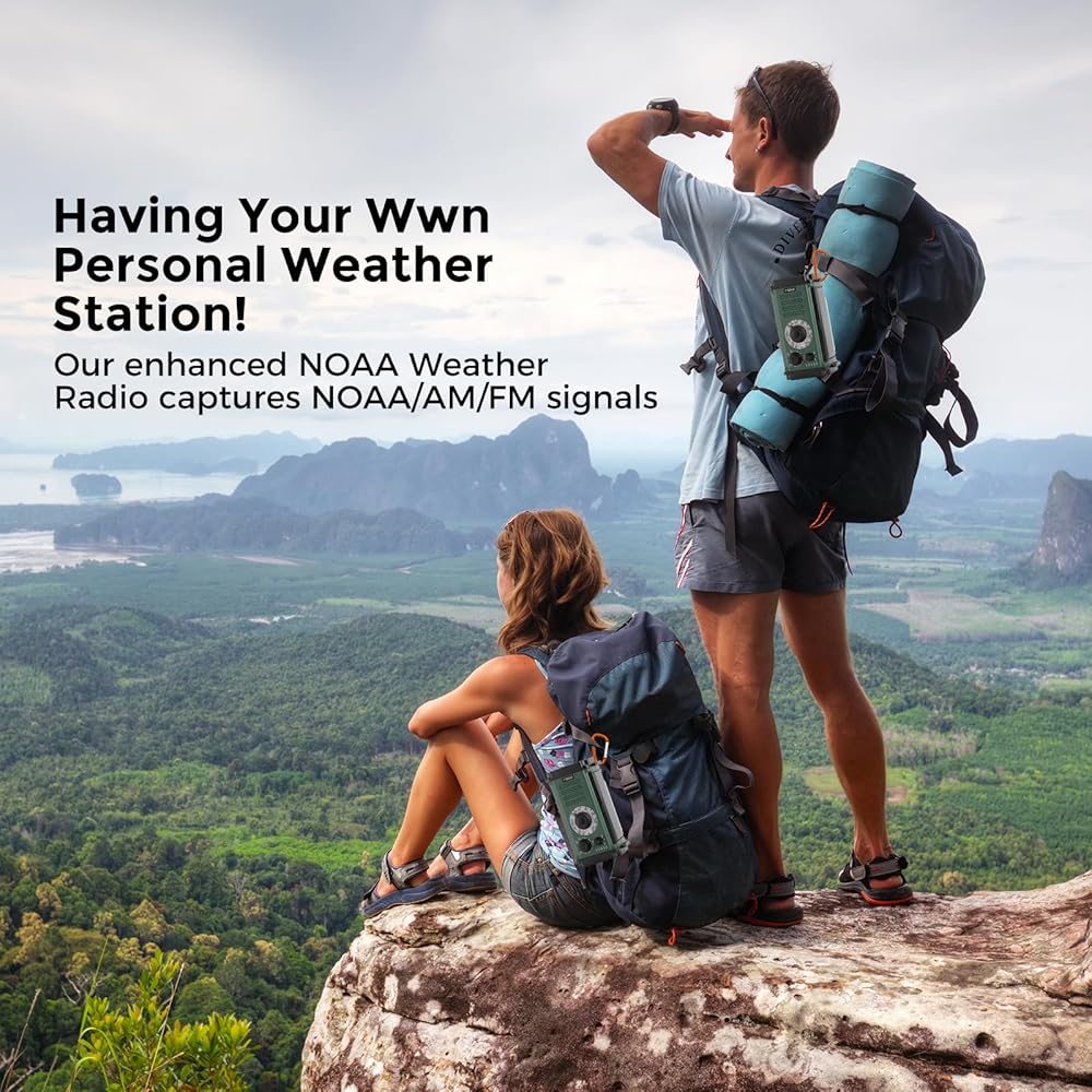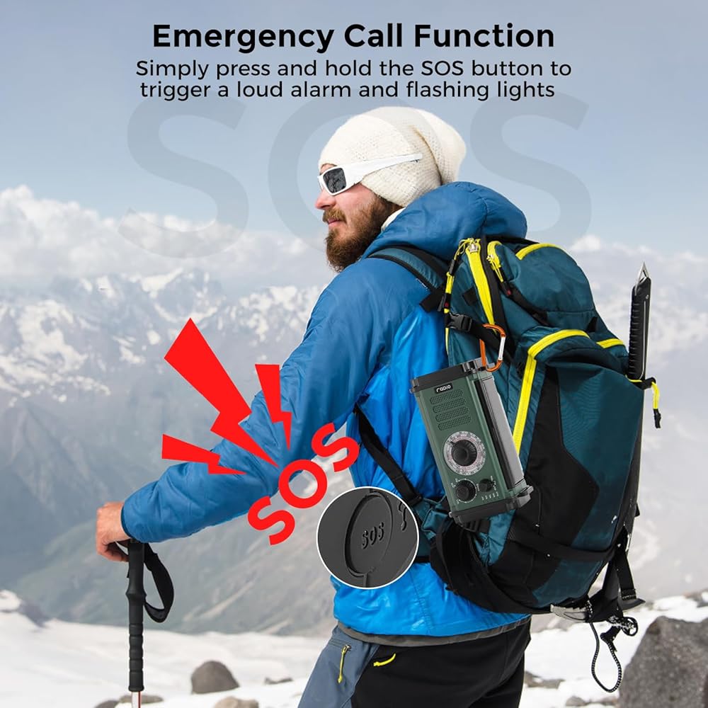 【Portable Emergency Tool】This battery powered emergency radio measures only 6.69*2.83*3.27 inches, easily fits into any backpack, weighs only 1.19 pounds, and comes with a shoulder strap so you can carry it with you or hang it on your bag. This portable emergency radio is suitable for outdoor camping, wilderness survival, hiking and cycling, especially when you have to move around in an emergency, it's very difficult to carry large equipment, this emergency radio is a wise choice.