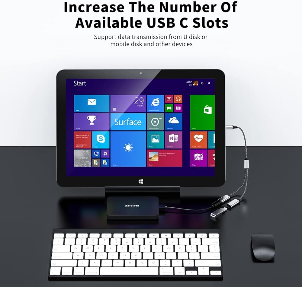 【Super Fit】With this Type-C spiltter,you can connect usb-c mouse, usb-c keyboard, usb-c flash disk, usb-c card reader etc to your USB C decvice. you can also connect the usb-c hard disk.(need to connect the external power)