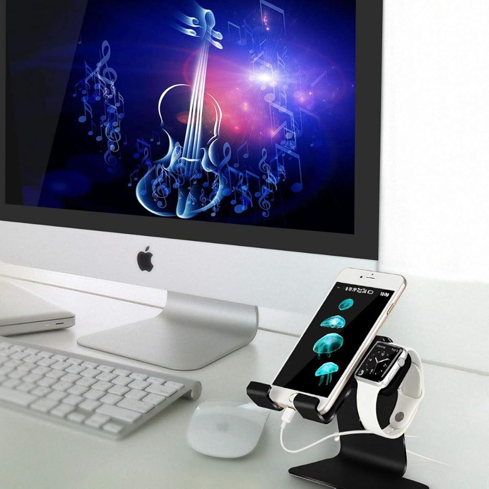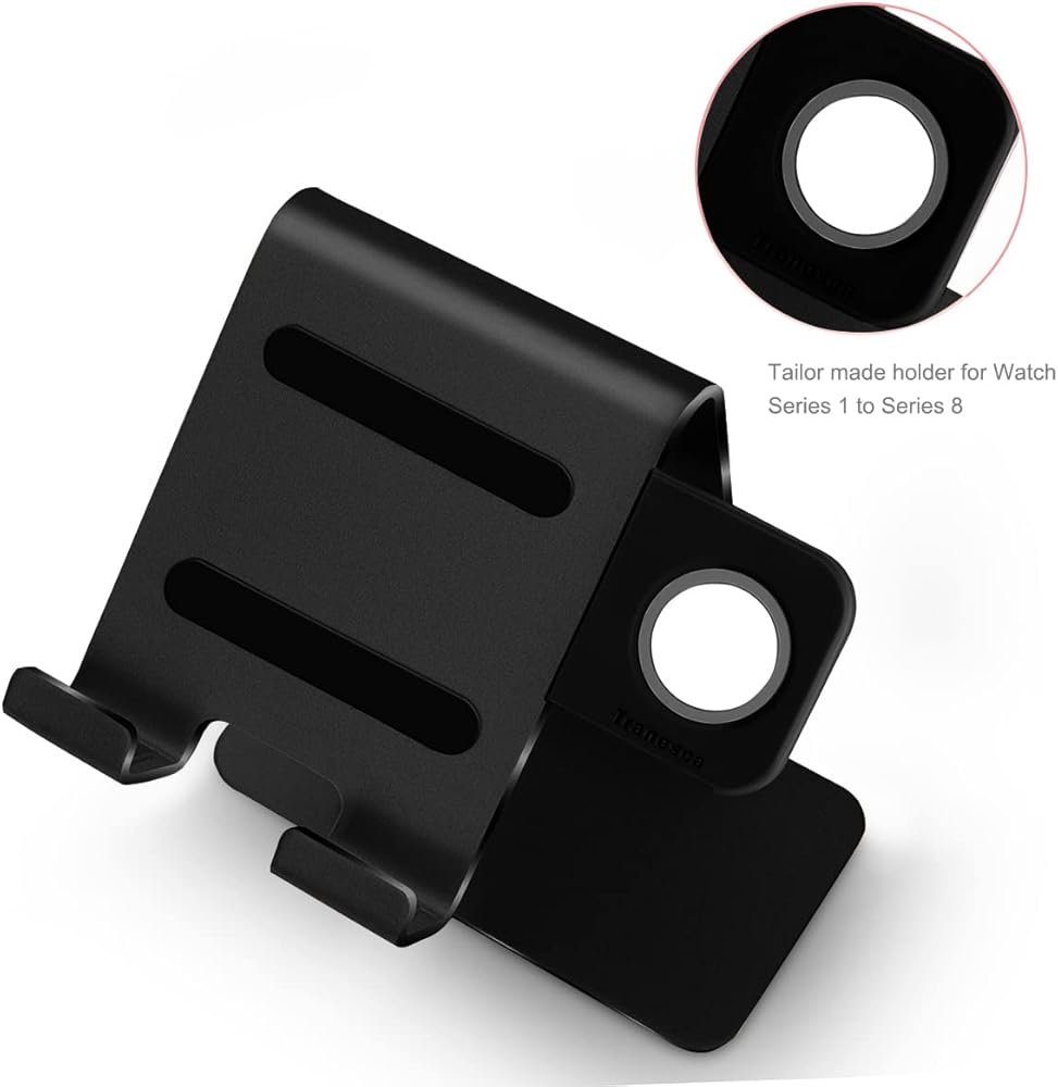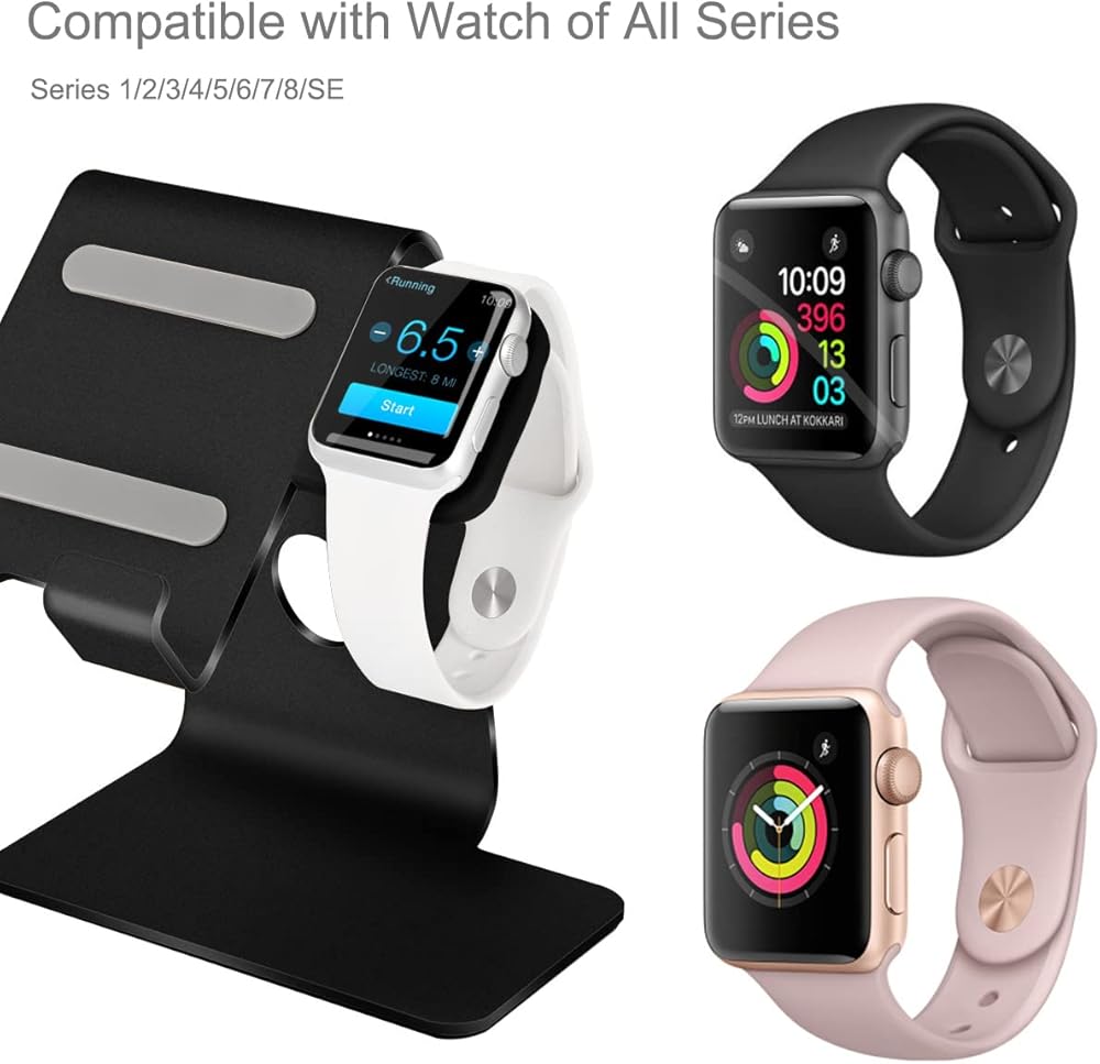 2 in 1 Charging Stand Holder Dock Compatible for Apple Watch Series Ultra2/Ultra/10/9/8/7/6/5/4/3/2/1/SE (38mm/40mm/41mm/42mm/44mm/45mm/46mm/49mm) and Cell Phone/Tablet - Black