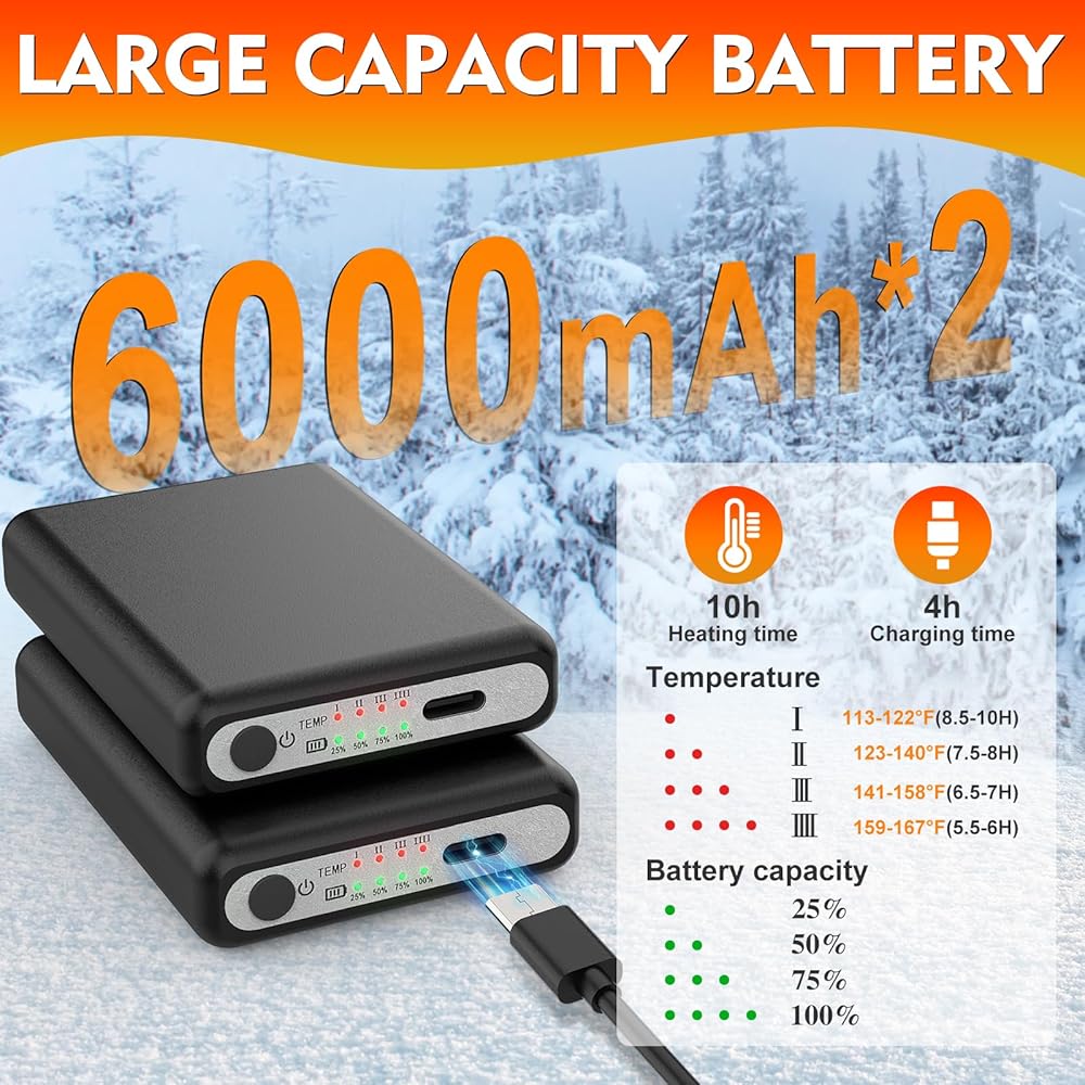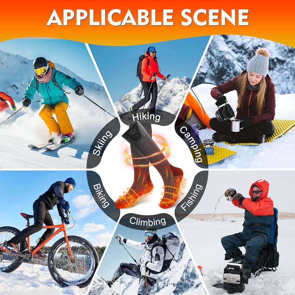 【دفء طويل الأمد مع بطارية 6000 مللي أمبير في الساعة: مجهزة ببطارية قابلة لإعادة الشحن عالية السعة 6000 مللي أمبير في الساعة، تضمن هذه الجوارب الساخنة دفء موثوقًا لمدة تصل إلى 10 ساعات على أقل إعداد. سواء كنت تتزلج أو تتنزه سيرًا على الأقدام أو تعمل في الهواء الطلق، فإن هذه الجوارب التي يتم تسخينها بالبطارية هي الحل الأمثل لراحة ودفء دائمين في درجات الحرارة الباردة.