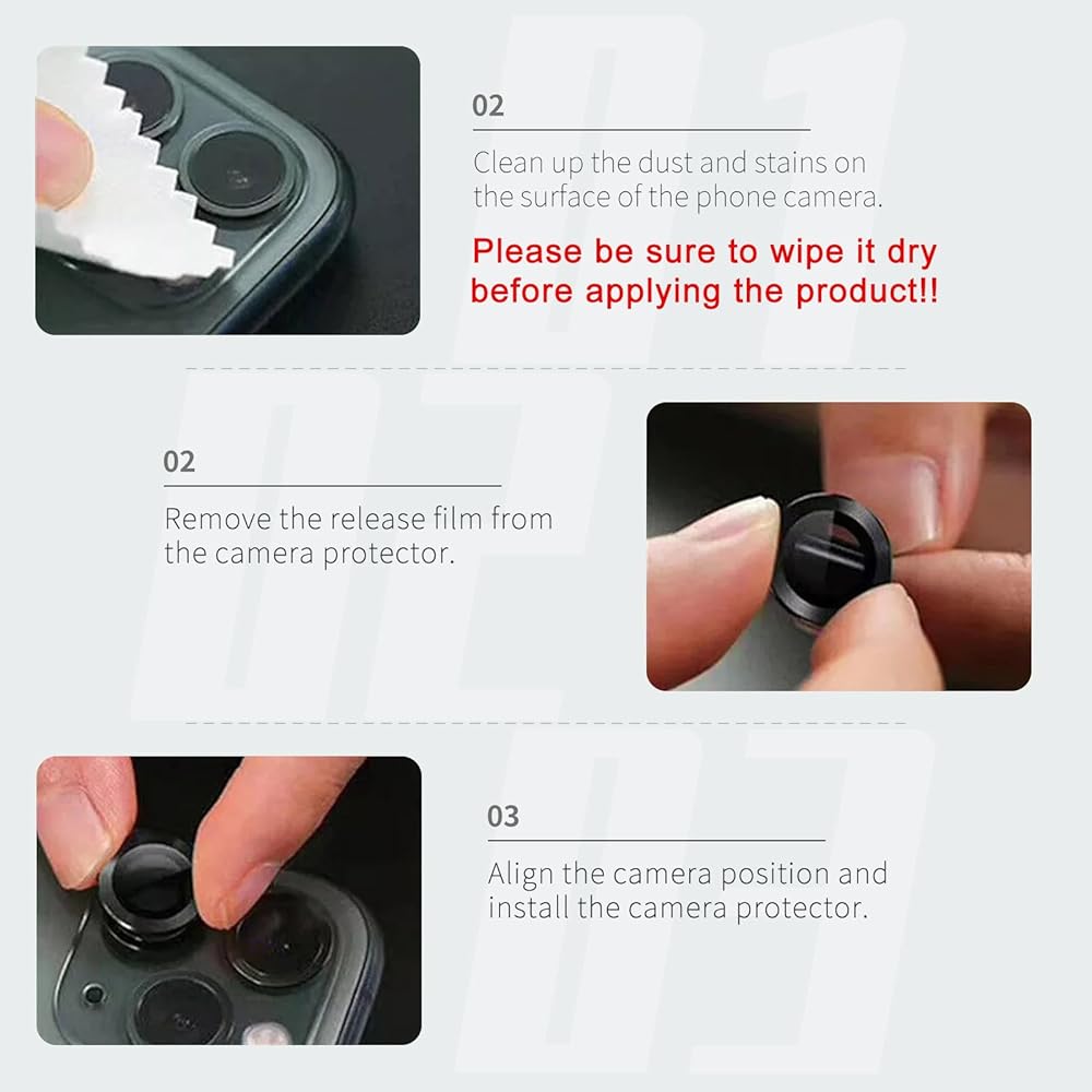 【Automatic Alignment】Enjoy a worry-free installation experience with our one-step process. Simply remove the bottom plastic film, align the cover with the lens, and gently press. The camera cover will automatically adhere to the lens, thanks to nano-electrostatic technology, ensuring strong adhesion without any bubbles. Effortlessly protect your camera lens with our easy-to-install design.