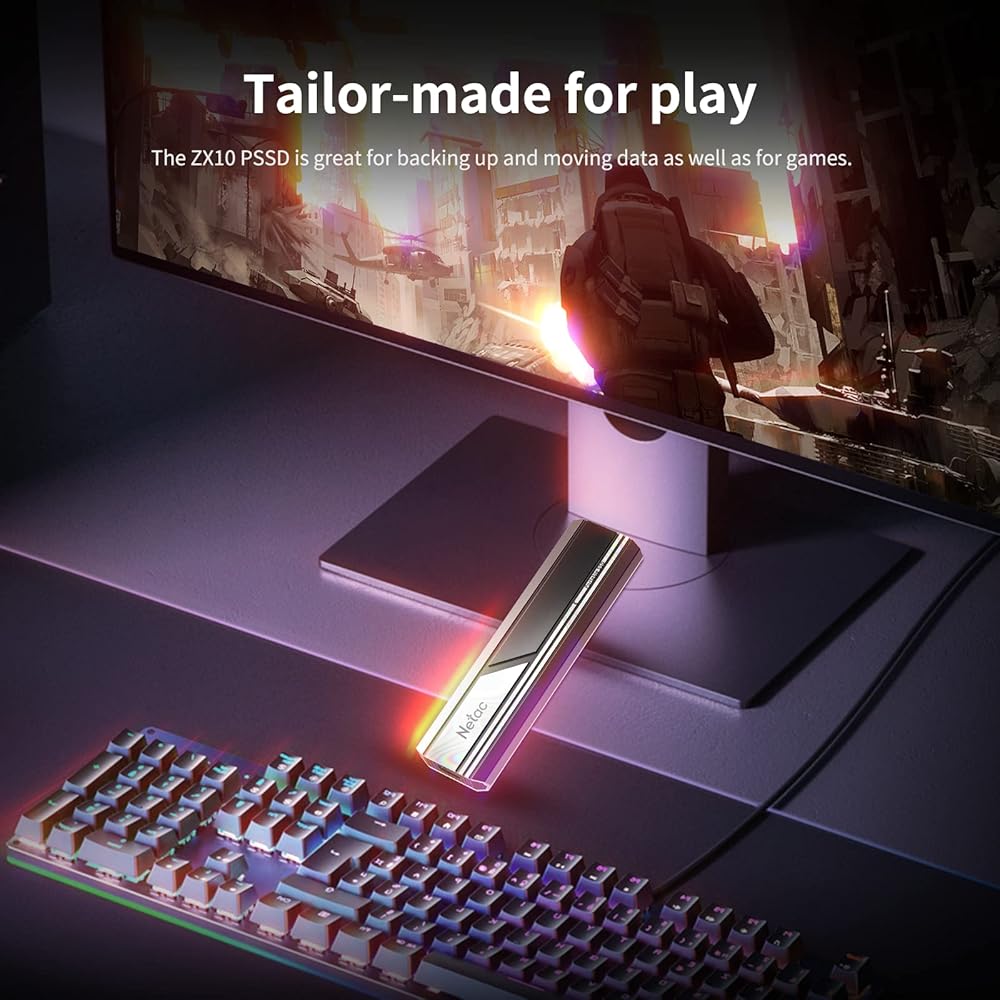 【High-Speed 】Netac ZX10 Portable SSD provide file transfer at speeds up to 1050MB/s and 1000MB/s. Compatible with Windows, Mac OS X, and Android.