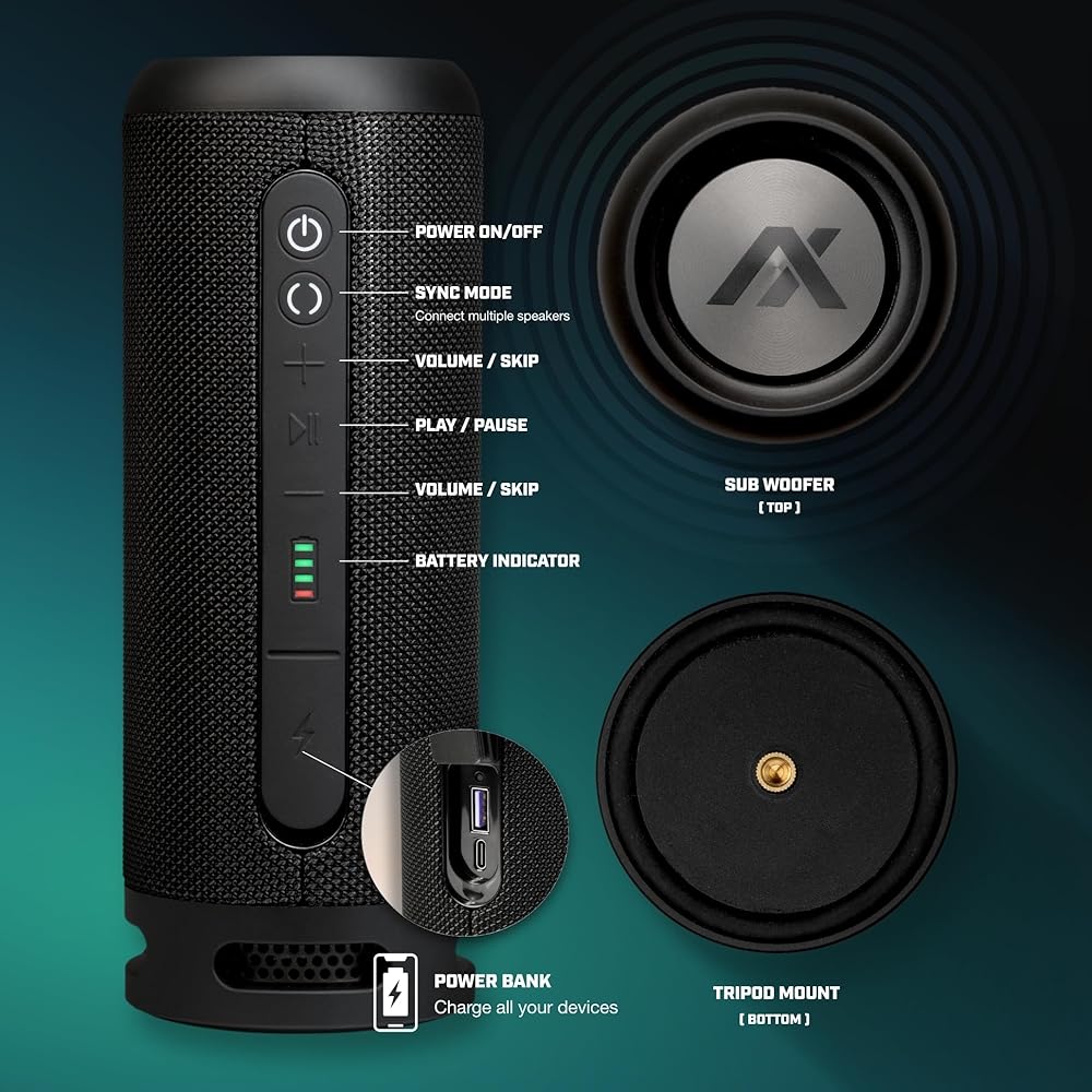 AXIL XPHERE Wireless Bluetooth Speaker – Portable Wireless Speaker for Outdoor Enjoyment – Surround Sound for 24H of Playtime – Outdoor Companion Portable Bluetooth