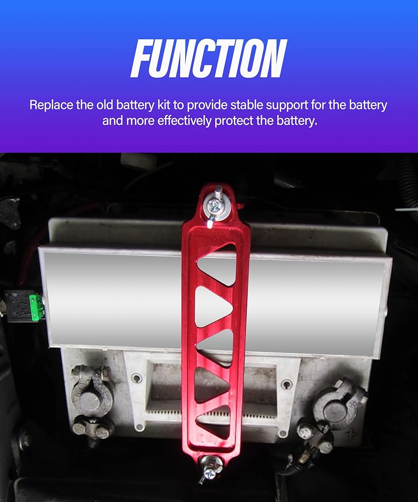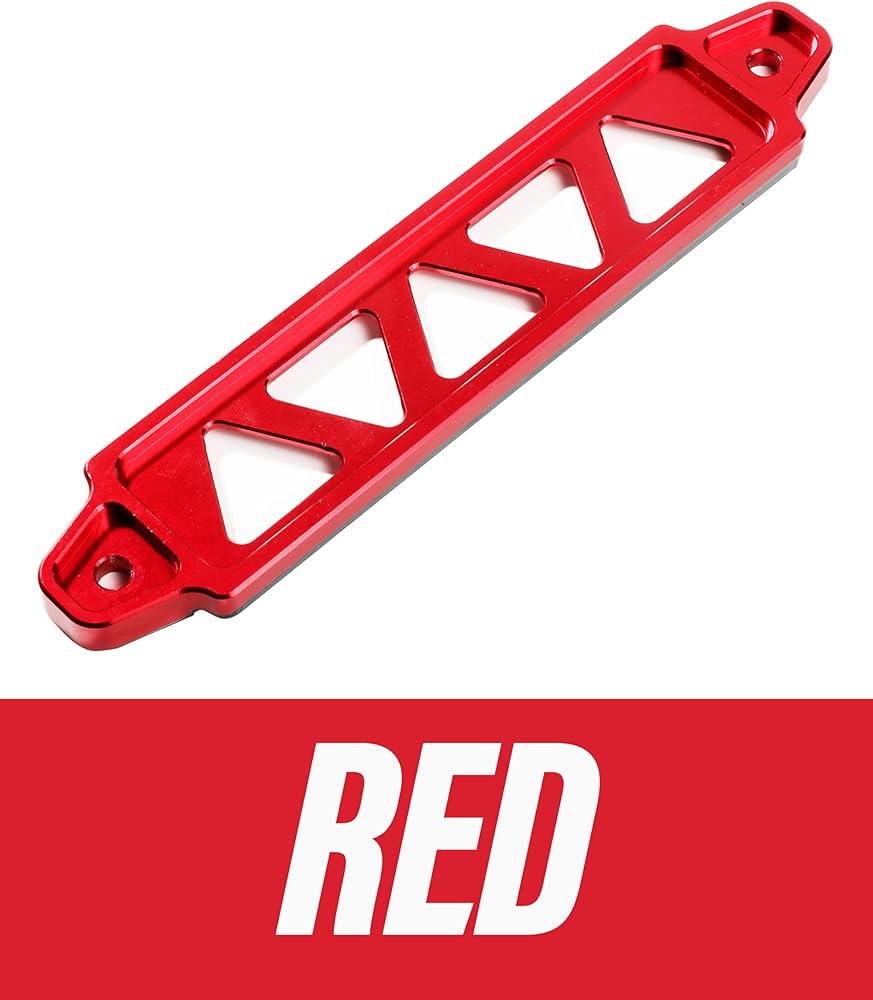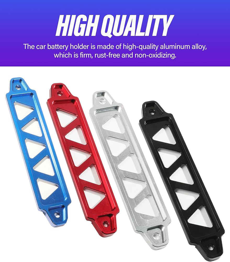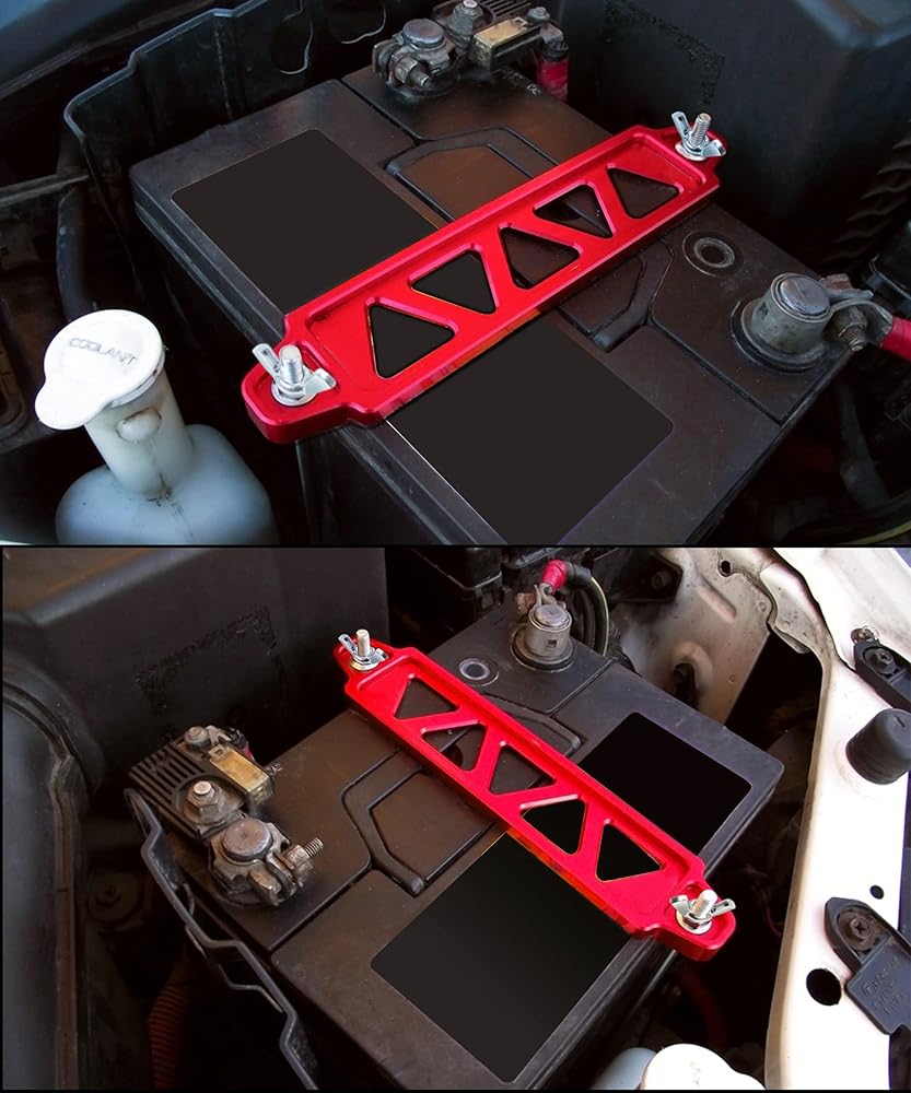 ESEWALAS Aluminum Alloy Battery Hold Down Bracket,Car Battery Holder Kit with 10in J Bolts,Car Battery Lock Down,Battery Tie Down Bracket,Universal Bracket Hold Lock Accessories (Red)