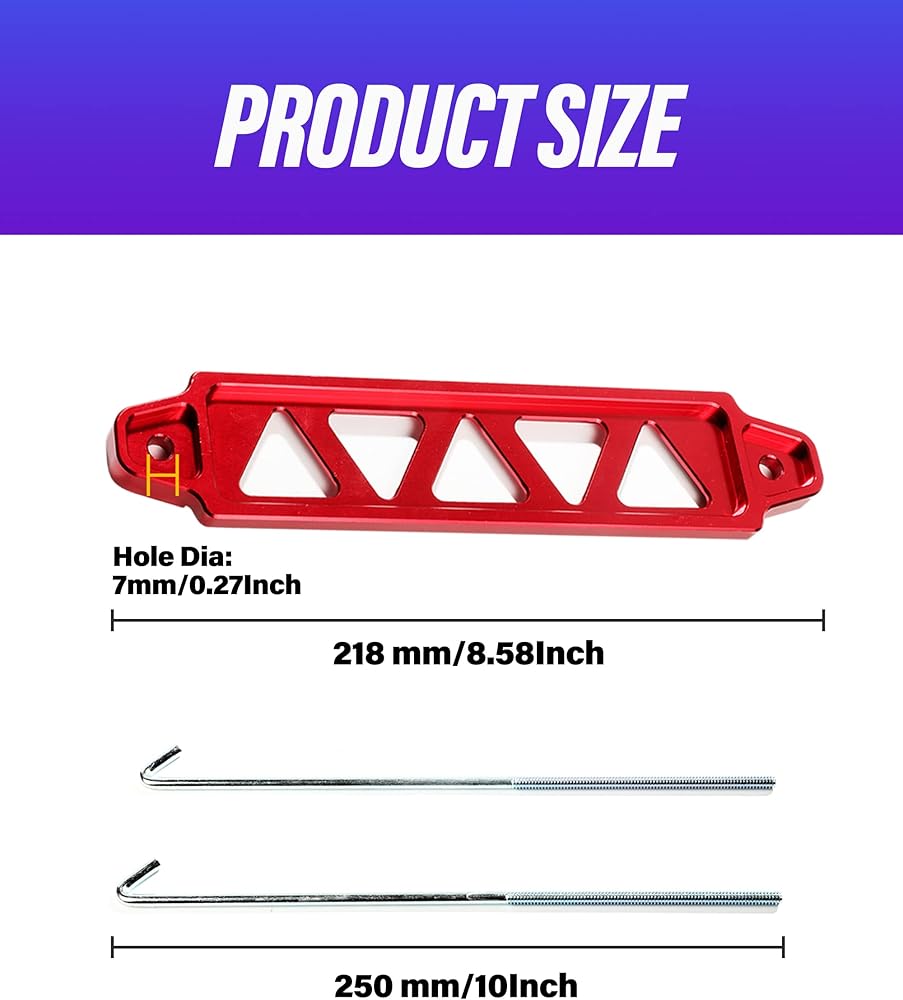 [Product Size] The total length of our battery mounting bracket is 8.58 ", the distance between bolt centers is 7.48", and the bolt length is 10 ". For excessively long bolts, the hook can be appropriately cut.