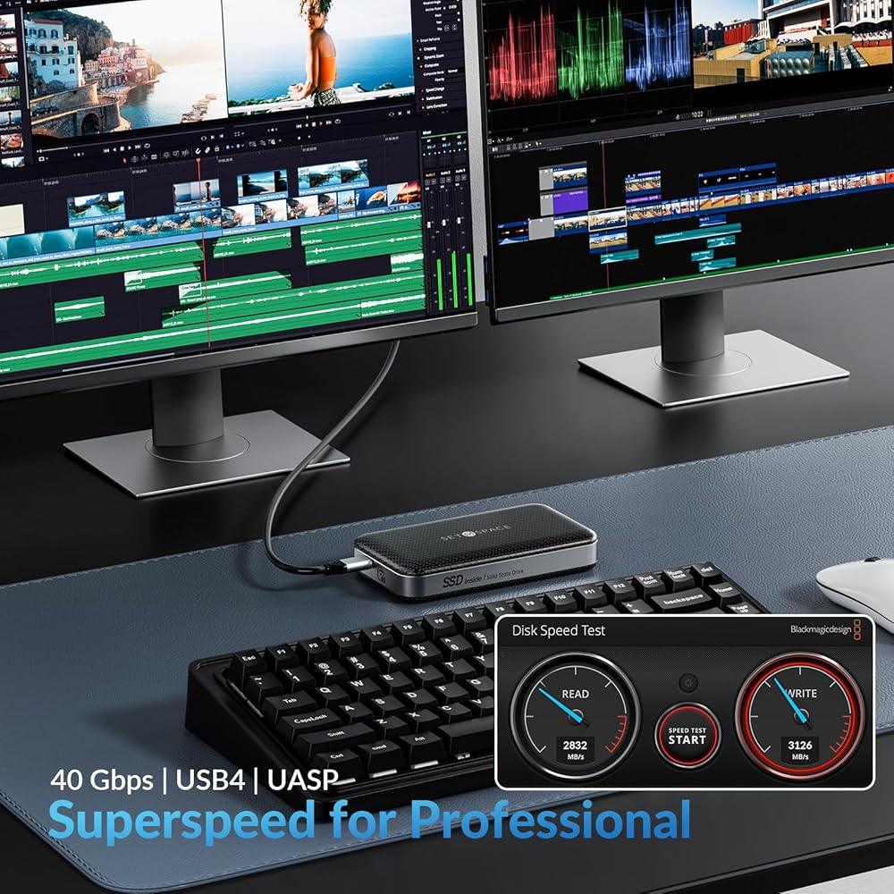 【Perfect Speed As Back-Up】The external hard drive adopts the transmission standard of USB 3.2Gen2 and uses the UASP acceleration protocol. The max read speed we got on an Intel platform reaches 1030MB/s. Highly recommended for home and office using.