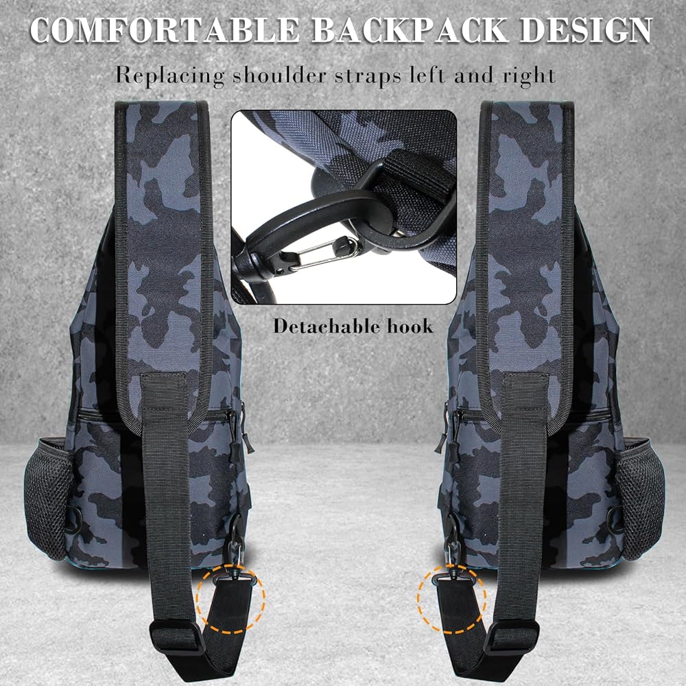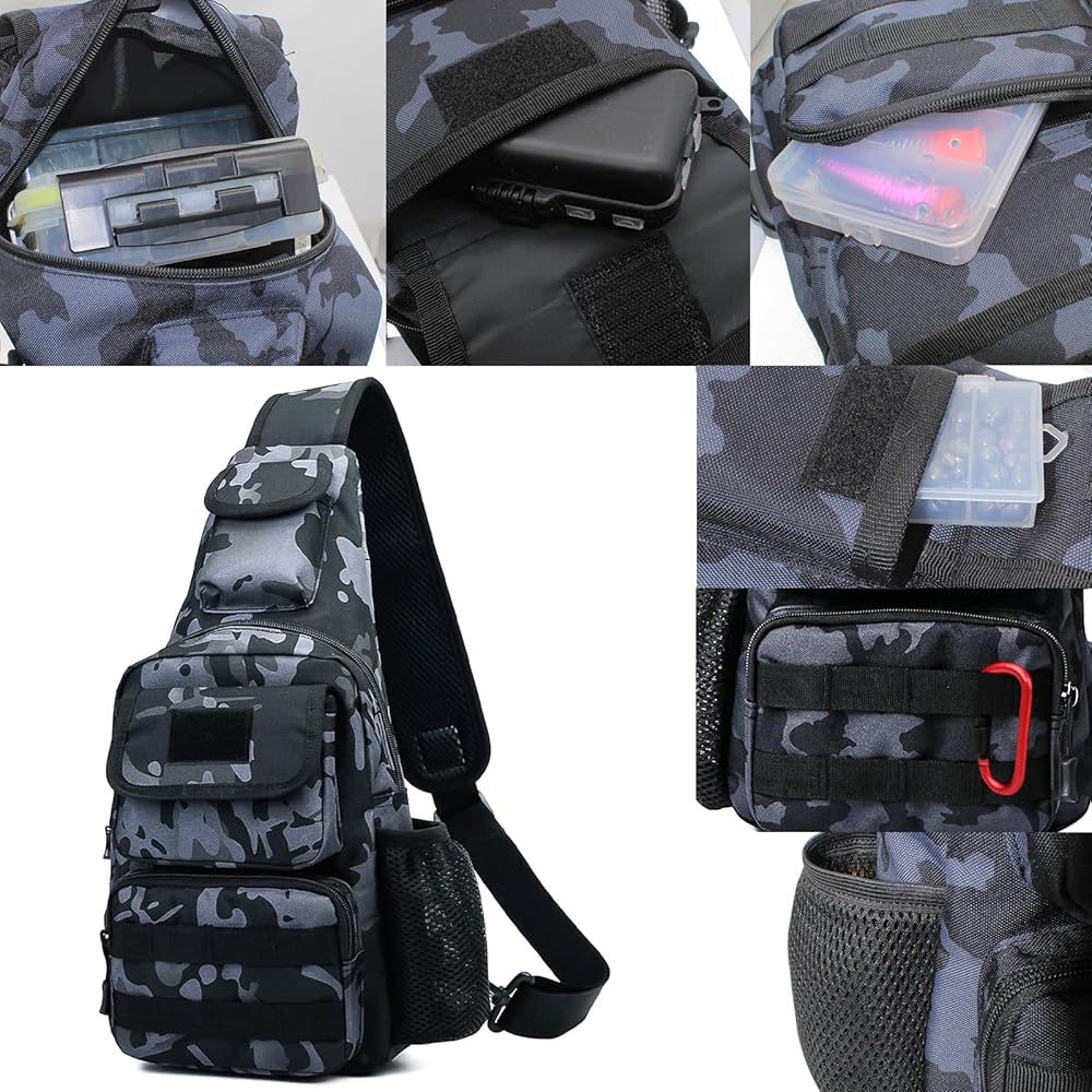 【Keep Your Things Organized】The portable sling small fishing backpack is compact and lightweight, consisting of one main bag and 6 accessory bags. Multiple uses in one bag. The independent interior space can store fishing accessories (baits, hooks, etc.) and there are other pockets and holders for you to carry many small items.