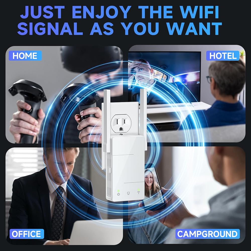 Full Signal Cover up to 10000 Sq,Ft: WiFi extender signal booster used to expand the wifi coverage of the router and eliminate frustrating dead zones, buffering, and dropped video calls; And then you can maintain a stable wifi connection anywhere in the house, including the yard, bedroom, basement, garage