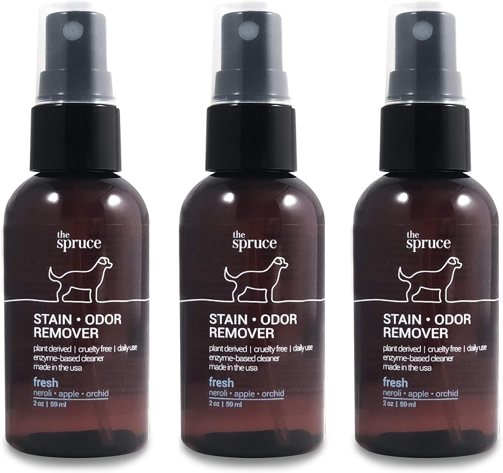 The Spruce Pet Stain & Odor Remover - Plant-Derived Enzyme-Based Cleaner for Dog and Cats Urine, Feces, Vomit, etc. Safe & Effective on Tile, Hardwood, Carpets, and Upholstery - 2oz Travel Size 3 Pack