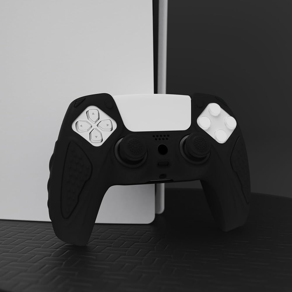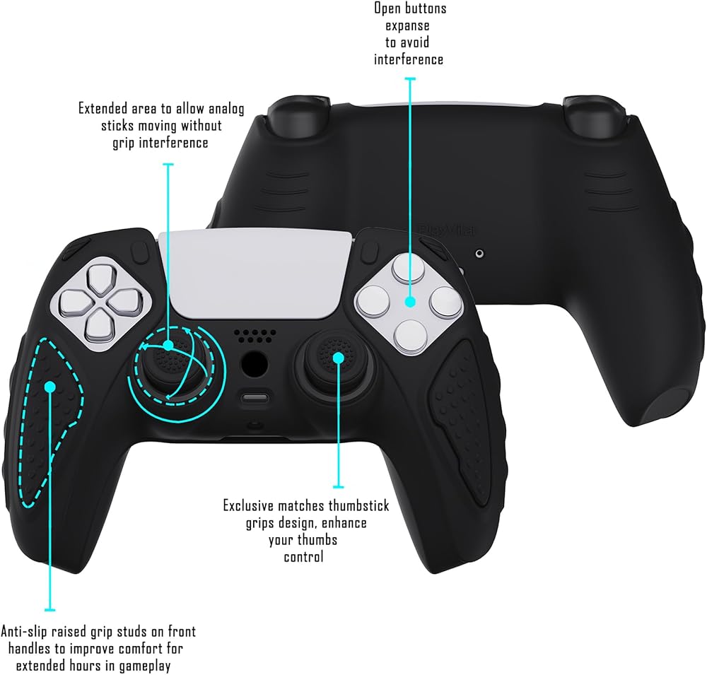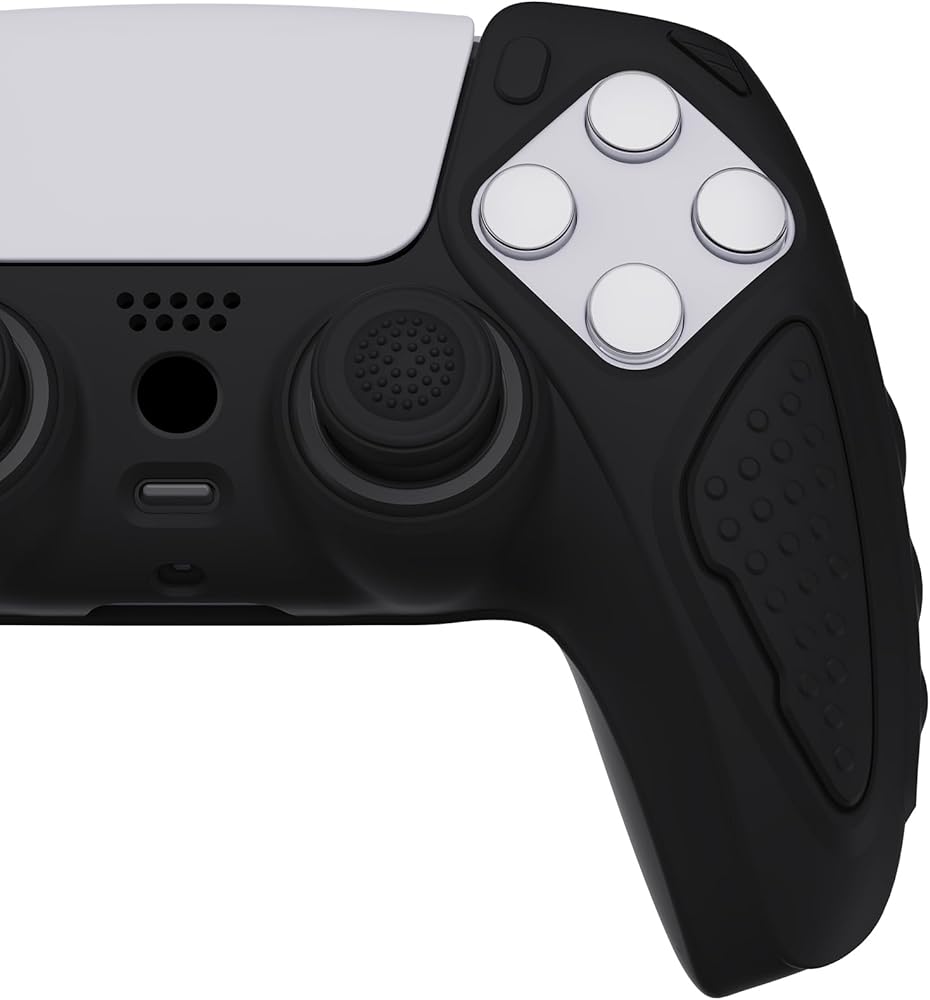 PlayVital Black Knight Edition Anti-Slip Silicone Cover Skin for ps5 Controller, Soft Rubber Case for ps5 Wireless Controller with Black Thumb Grip Caps