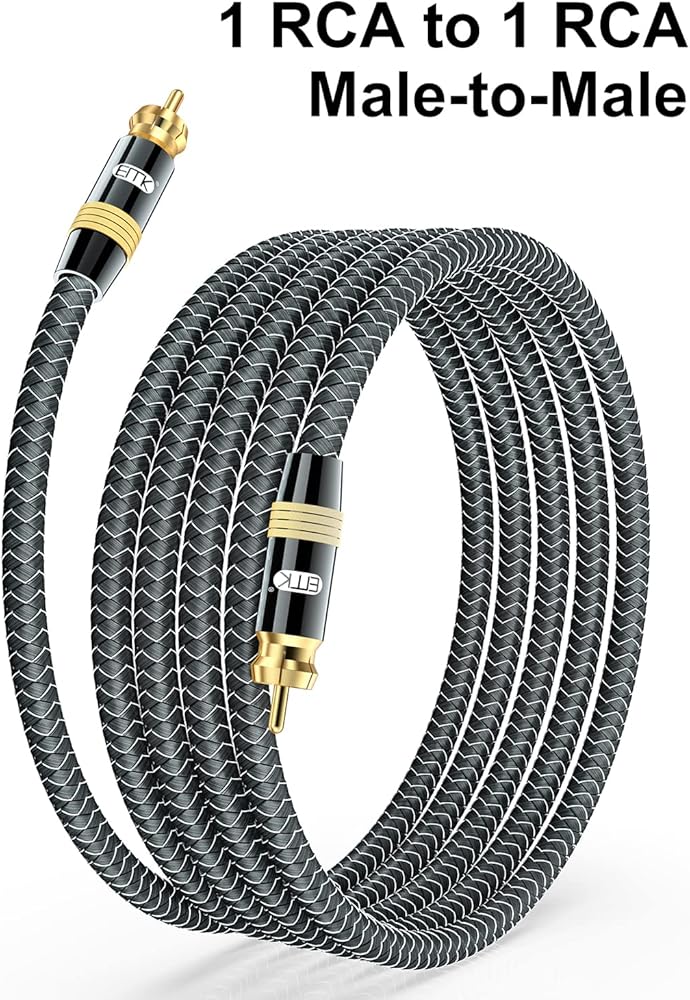 EMK 15Ft RCA to RCA Subwoofer Cable - 24K Gold-Plated, Nylon Braided RCA Audio Cable, Double Shielded Digital Coaxial Cable for Premium Home Theater & Hi-Fi Systems