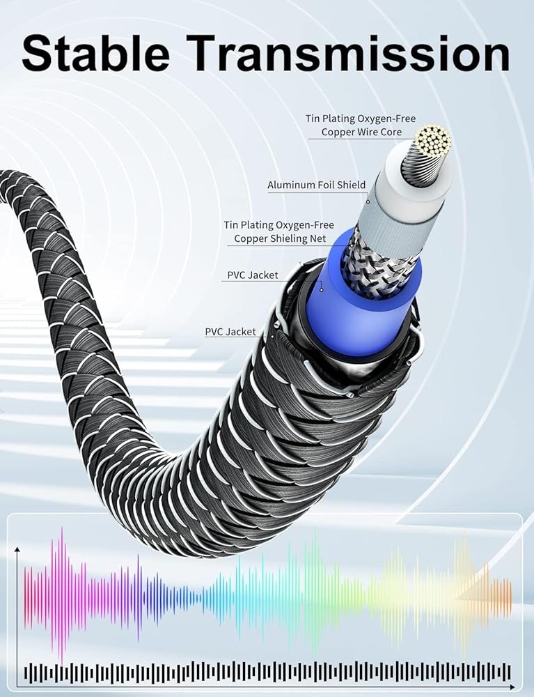 • [Fexible and Durable]: With a 15000+ bend lifespan several times longer than original audio cables, double-braided nylon exterior make audio cables adding to the durability and tangle-free.