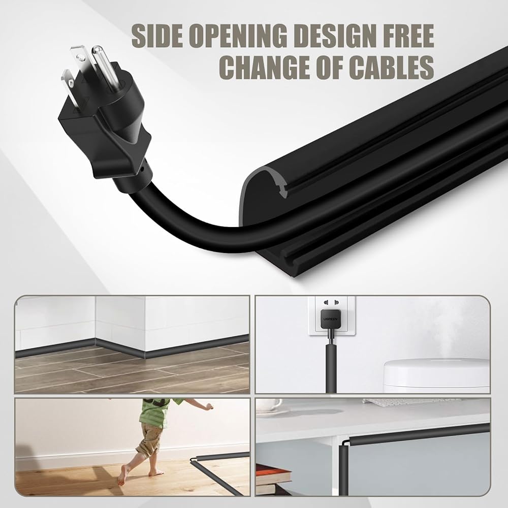 VERSATILE APPLICATIONS: The JAHOMFAI Wall Cord Cover is perfect for hiding and protecting wires, cables, and other equipment in homes, offices, and workshops. It provides a clean, organized appearance—whether concealing TV cables behind entertainment centers, managing computer wires under desks, or hiding power cords for electric sofas and cables under carpets. This JAHOMFAI Cord Cover for Wires also helps prevent tripping accidents, keeping your space neat and safe