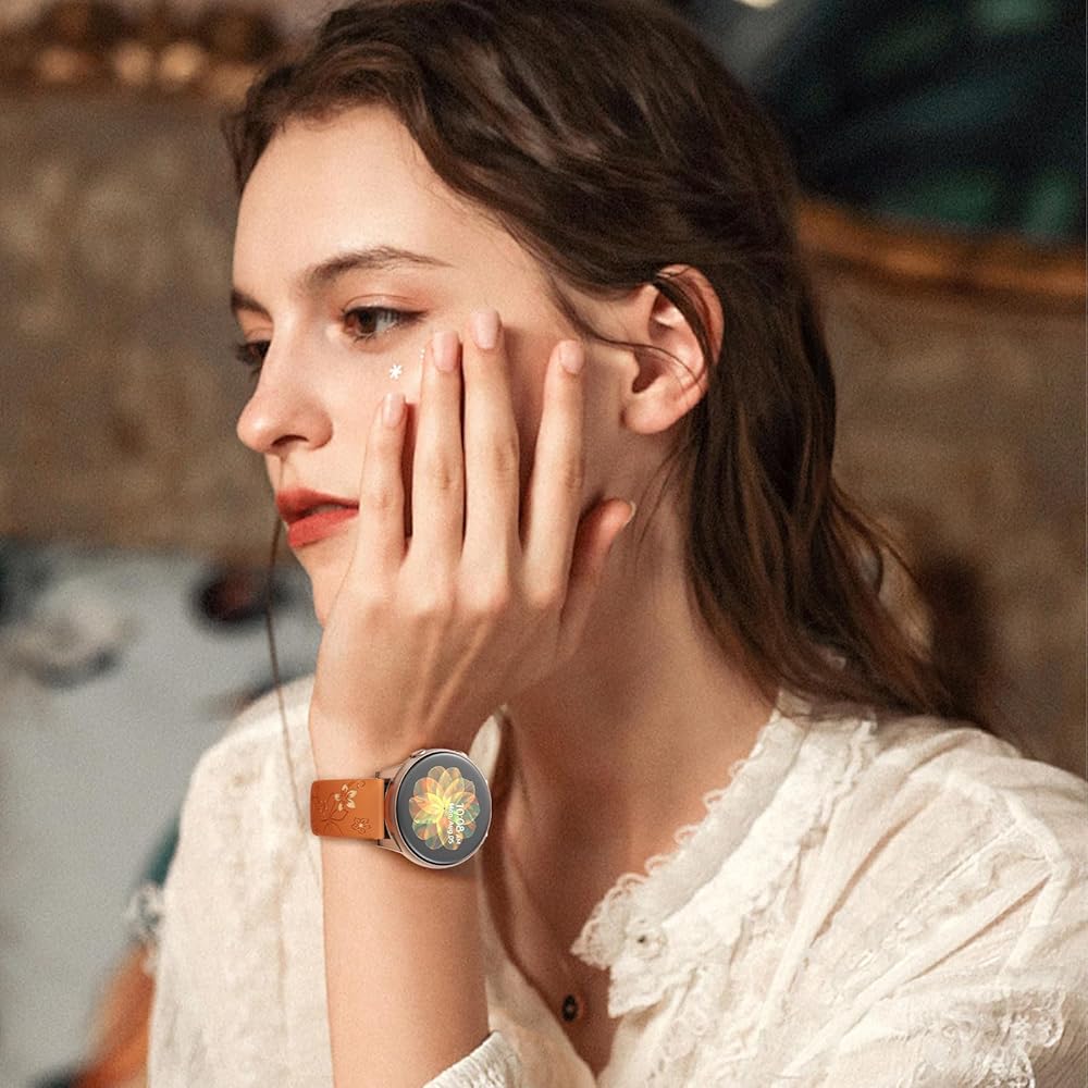 • 【Best Gift】Our stylish Flower Engraving Galaxy Watch 6 Band has Multi beautiful color selection, can make your galaxy watch 5 watch band look fantastic and luxurious. Different colors fit different moods on any occasions. Perfect gift for Birthday, Mother's Day, Father's Day, Christmas Day, Thanksgiving Day, Valentine's Day, etc