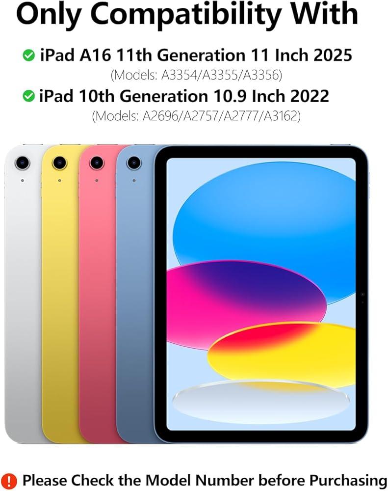 iPad 10th Generation Keyboard: Specially designed for 10.9-inch iPad 10th generation (Model Number: A2696/A2757/A2777). Note: It will not be compatible with any other iPad model. Please check the model number starting with "A" on the back of your iPad before purchasing.(NO PEN included in the package)