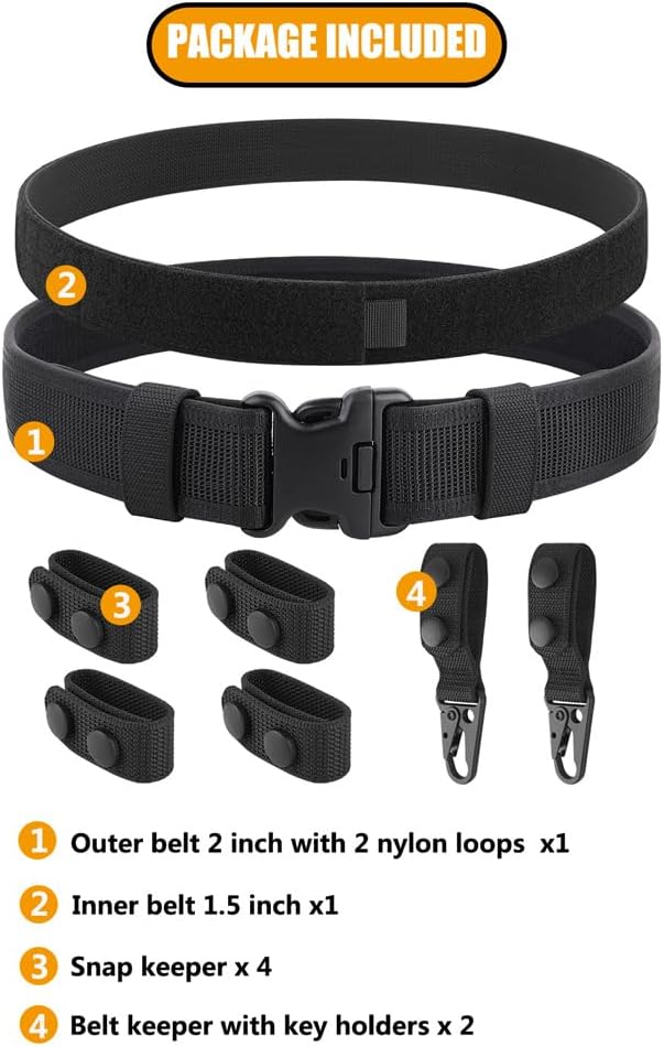 Packing List :included with the main belt, inner belt, and four belt keepers with snap closure and two utility hooks.