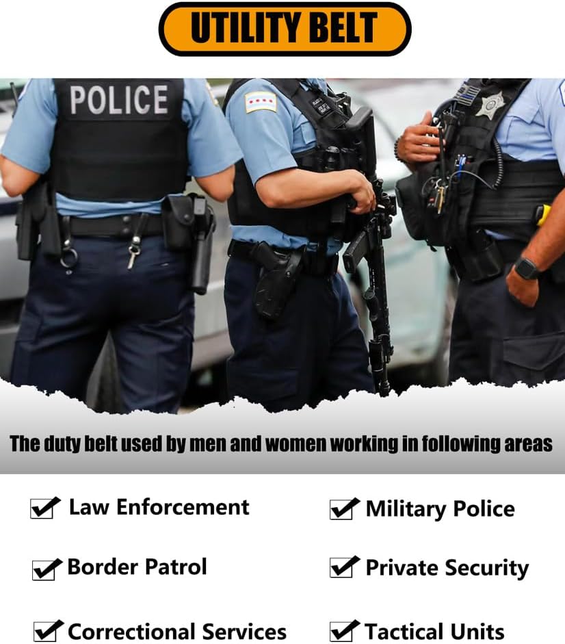 Adjustable Duty Belt : You can adjust the belt length by hooks & loops closure at the end of the belt.