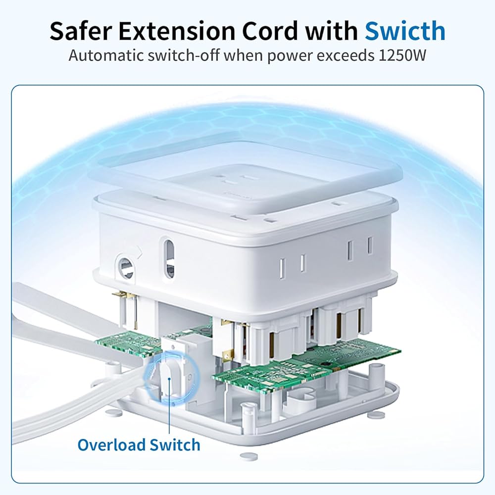 【NTONPOWER Quality Assurance】NTONPOWER white extension cord with overload switch, maximum power is 1250W, support 110V-240V voltage, we provide you with 18 months warranty and 24 hours customer service, your satisfaction is our greatest motivation!