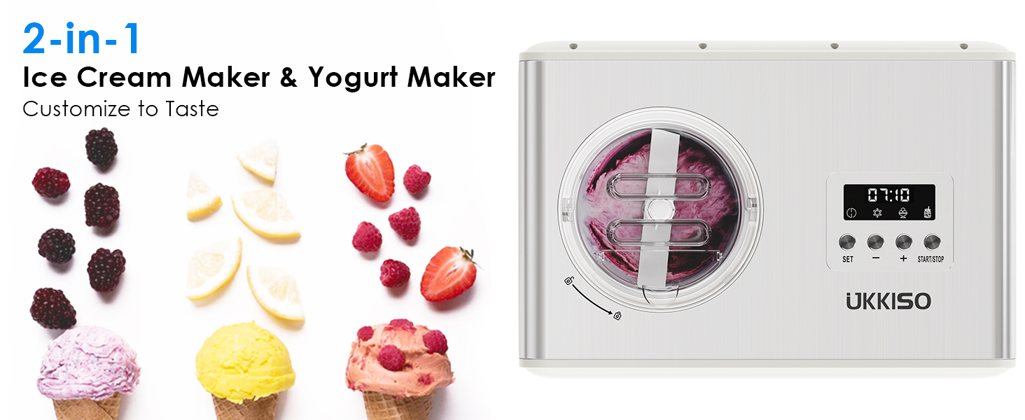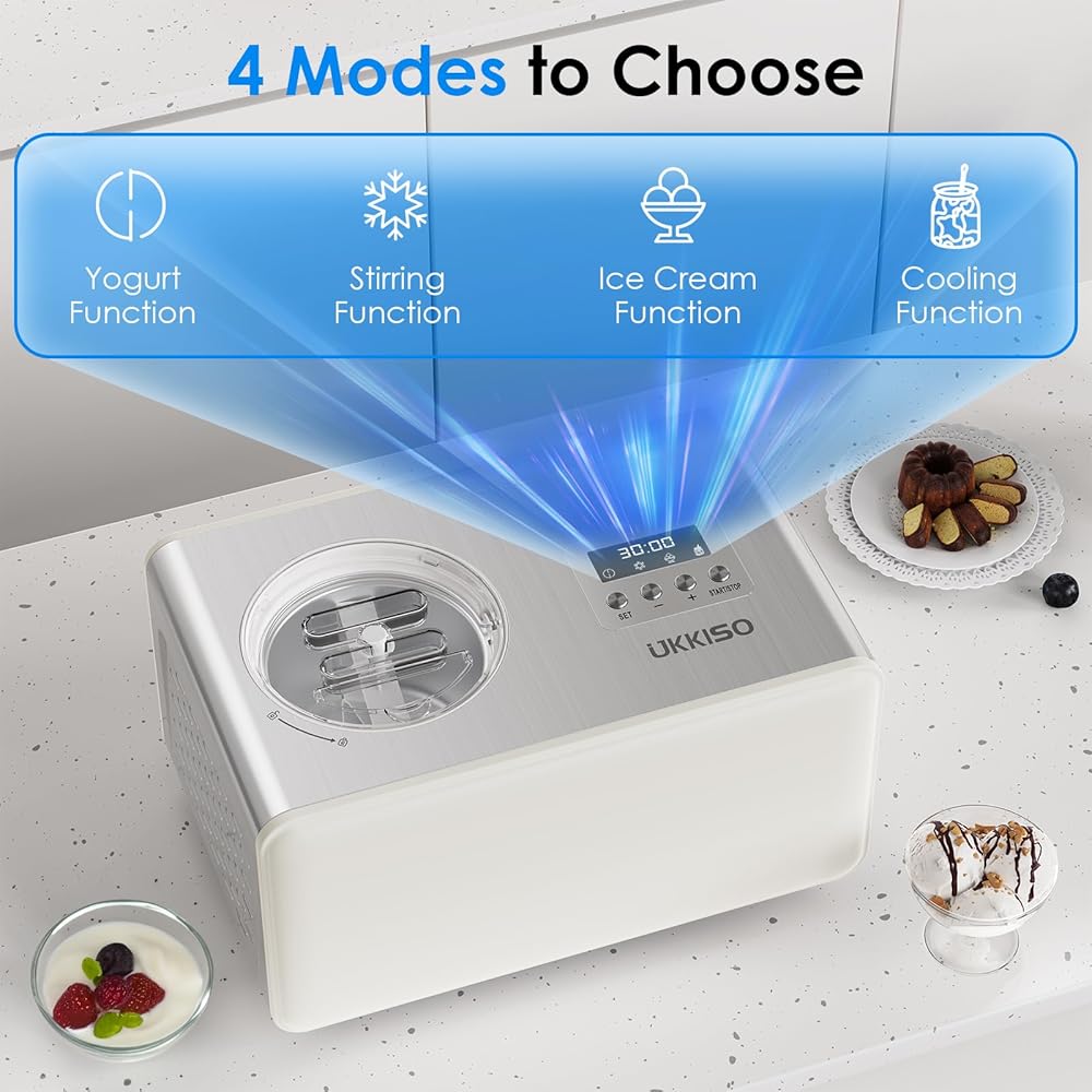 🍦【2-in-1 Machine】UKKISO 1.6 Quart homemade ice cream maker & yogurt maker features 4 modes: Ice Cream, Yogurt, Cooling, Stirring. There is no need to buy an additional yogurt machine with this UKKISO 2-in-1 ice cream machine