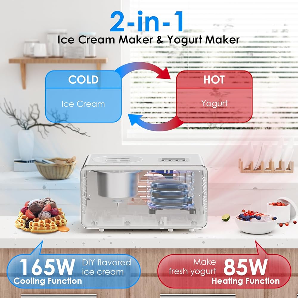 🍦【Healthier Choice】Use pure and healthy ingredients to enjoy the fun of DIY your favorite frozen treats at home! The yogurt function enables homemade yogurt-making with a variety of milk and starter options to suit preferences such as probiotic, organic, raw or non-dairy