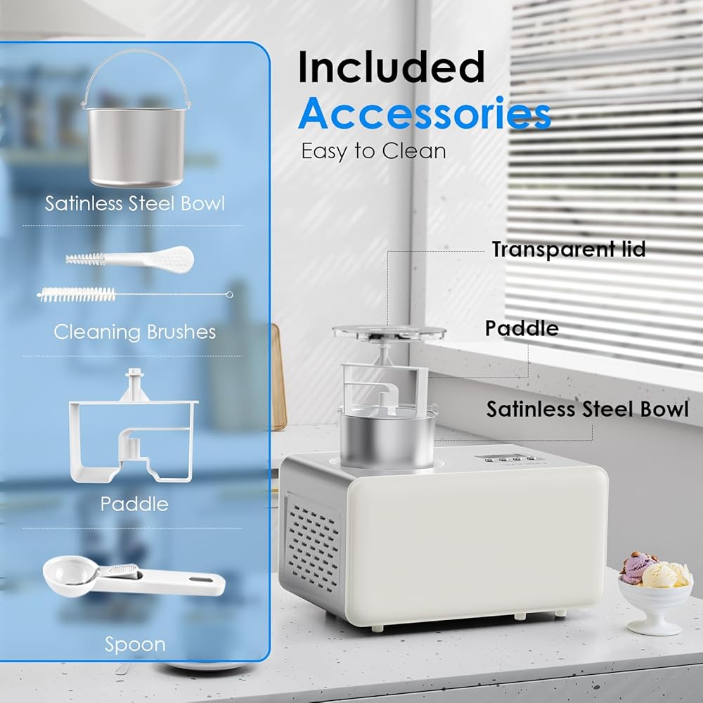 🍦【Safe & Easy to Operate】A simple button control panel with LCD Display and Timer is user-friendly. Extended Cooling function prevents ice cream from melting. Motor Protection function stops the motor from churning to prevent overheating or damage