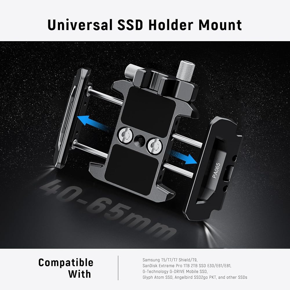 【Universal SSD Holder Mount】 This 1.6"-2.6"/40-65mm adjustable SSD holder bracket mounting accessory is compatible with Samsung T5/T7/T7 Shield/T9, compatible with SanDisk Extreme Pro 1TB 2TB SSD E30/E61/E81, compatible with G-Technology G-DRIVE Mobile SSD, compatible with Glyph Atom SSD, compatible with Angelbird SSD2go PKT, and other SSDs
