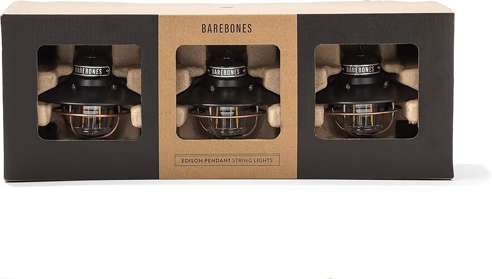 Barebones Edison Pendant String Lights - Vintage White, 3 Edison-Style LED Bulbs with 10-Foot Cord, Energy-Efficient Outdoor Lanterns for Patio, Garden, or Indoor Decor
