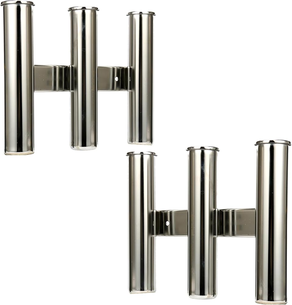 Amarine Made 2Pcs 3 Tube Boat Fishing Rod Rack 316 Stainless Steel Wall/Side Mounted Rod Holder Bracket Fishing Pole Holder for Marine Boat Yacht Camper