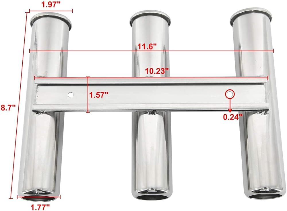 The 3 tube rod holder is made of high quality marine grade stainless steel, Sleekly designed and manufactured from a marine-grade stainless steel.