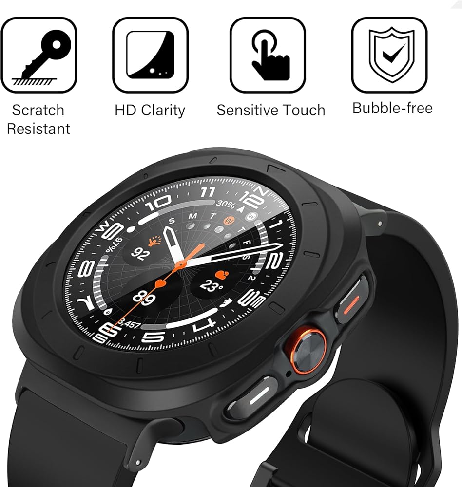 【Easy to Install】Easy to install for its snap-on design; Charge directly, no need to frequently remove the protective case; Precise cutting ensures a perfect fit, easy access to all controls, buttons, sensors and Samsung Galaxy Watch features.
