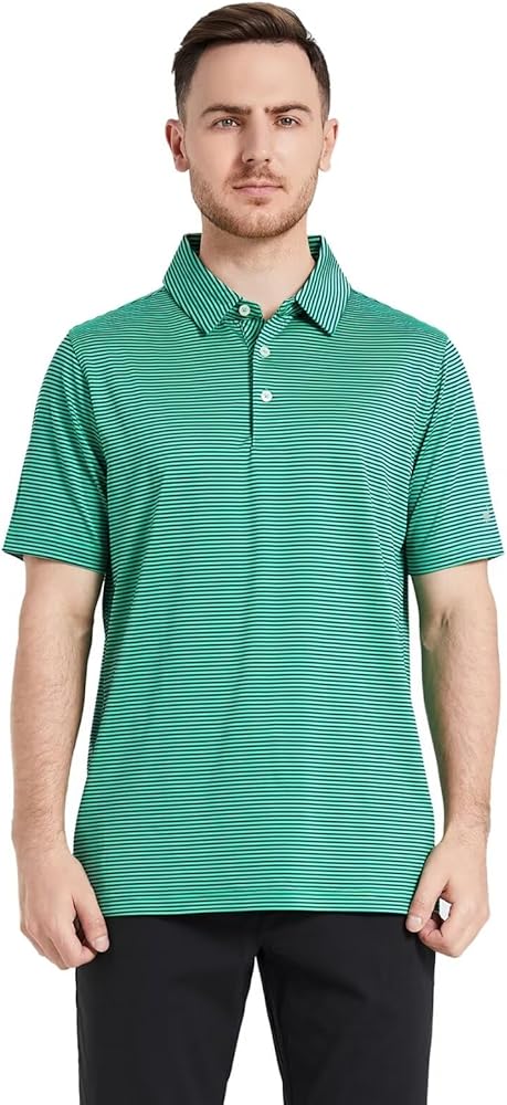 PERFORMANCE MATERIAL: Our golf shirts for men, made from polyester spandex striped two tone fabric, lightweight, quick dry, moisture wicking, UPF 30+, soft, 4-way stretch and breathable to wear in whole day.