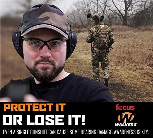 Bundle Includes: Walkers Razor Slim Electronic Muff (Black Patriot) and Walker's Crosshair Sport Shooting Glasses (Clear)