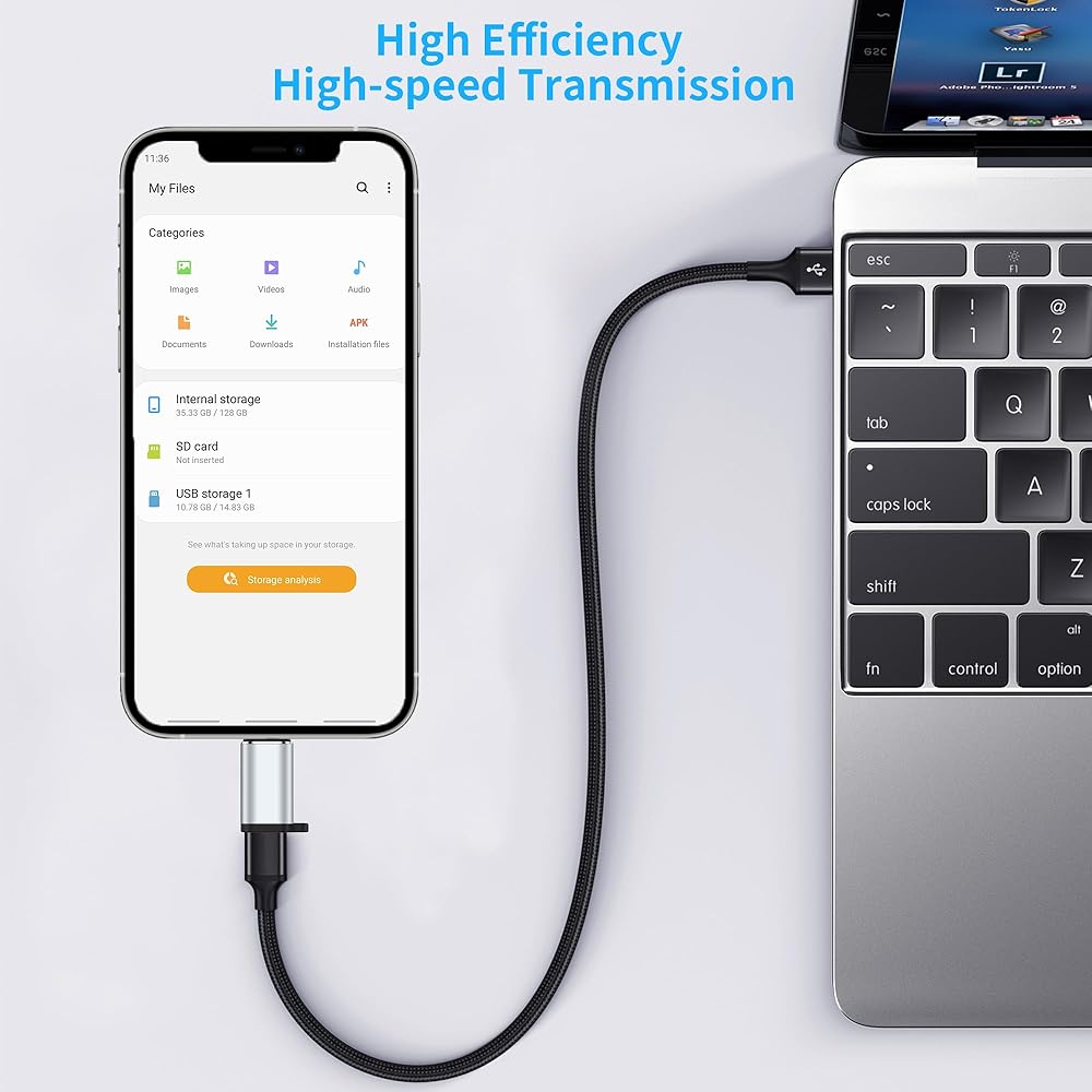 【Fast Charging & Data Transfer】The adapter supports up to 60W (20V/3A) fast charging and supports 480Mbps (40-60MB/S) data transfer speed. ❌Does not support OTG, video, headsets, microphones, keyboards, mice, USB flash drives, hubs, card readers, etc.