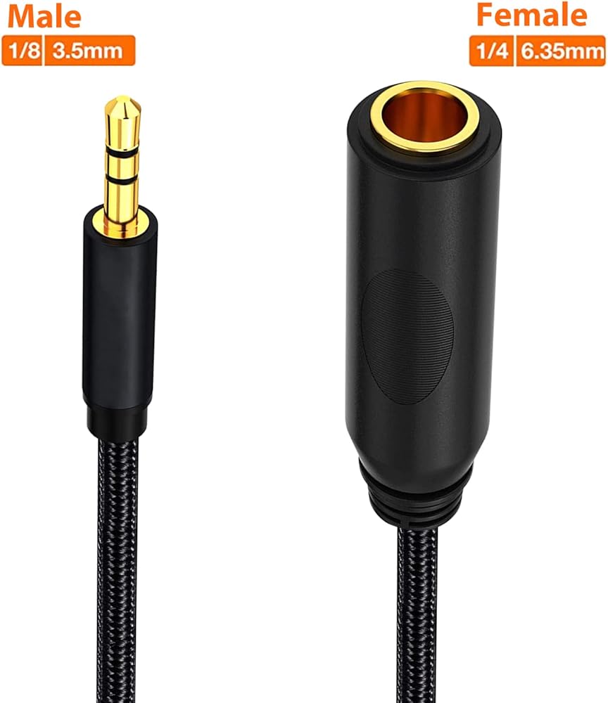 [Wide Compatiblity] This 1/4 to 3.5mm audio adapter cable widely used for Connection Between 3.5mm and 6.35mm Jack Devices, Include Computer, Phone Latop, Amplifiers, Guitar, Keyboard Piano, Home Theater, Mixing Console, Headphones, Earbud, Speaker, Car Stereo Home HIFI Stereo System.