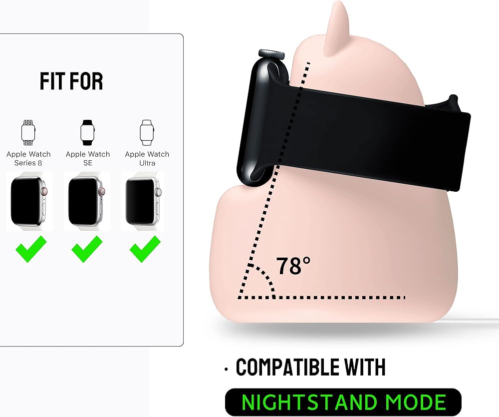 【Support Nightstand Mode】The Watch charging stand could support the nightstand mode of the Watch,and could be use an alarm clock while charging.Cute Ear appearance matches the Watch better for own use and as a gift.