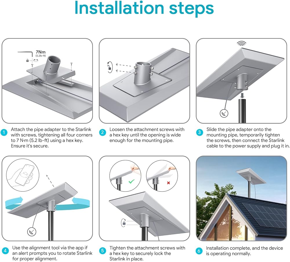 *Easy Setup: Hassle-free installation with included hardware. Just slide the starlink mini mount car onto the pole, tighten the screws, and place your mini starlink device. (Note: mini starlink mount kit required not included).