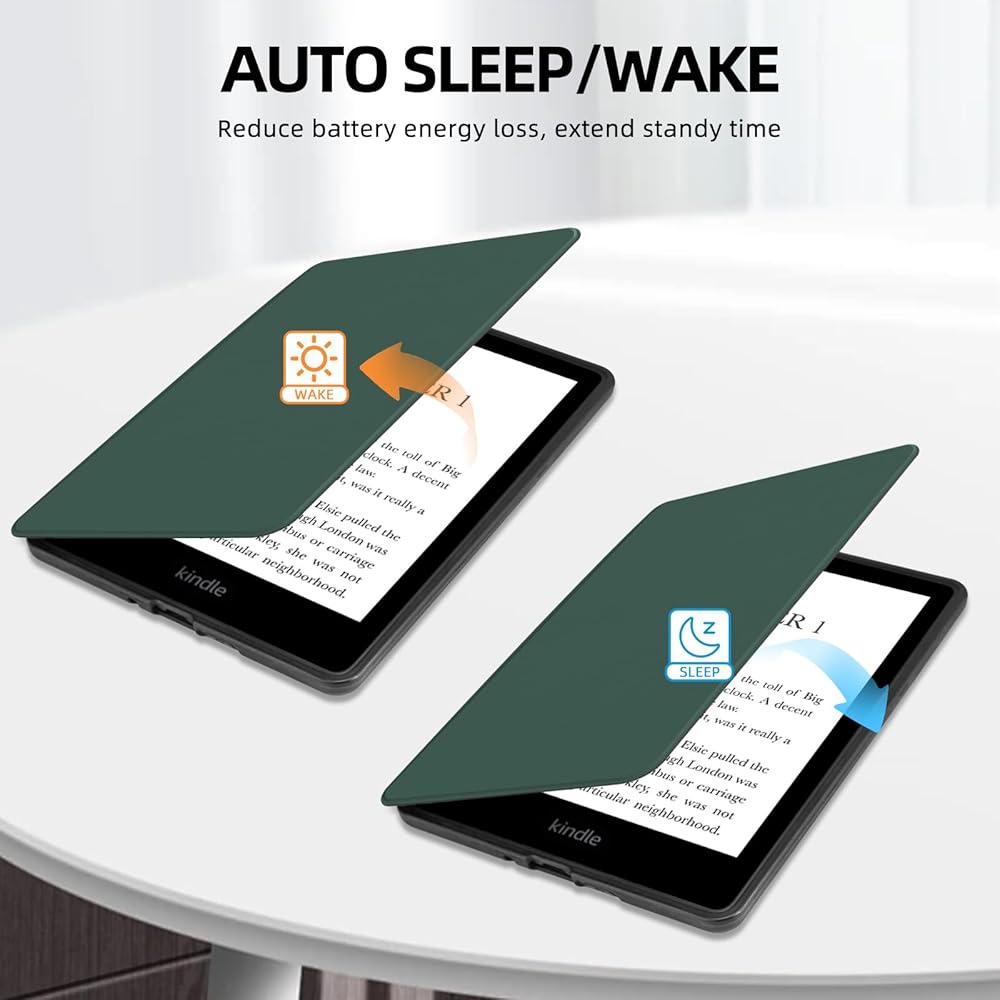 【Auto Wake/Sleep】Smart Cover with flexible PU leather support auto sleep/wake.When you open the case, your Kindle will activate, and when you close it, it will automatically enter sleep mode and the front cover will adsorb to the screen to ensure secure closure because of the magnetic strip inside the cover. Save equipment power and ensure long battery life.