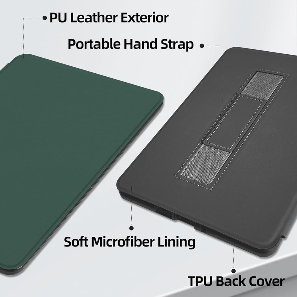 MOROCK Case for All-New 6.8" Kindle Paperwhite and Paperwhite Signature Edition (11th Generation, 2021 Released), Premium Lightweight PU Leather Cover with Hand Strap, Auto Sleep/Wake, Green