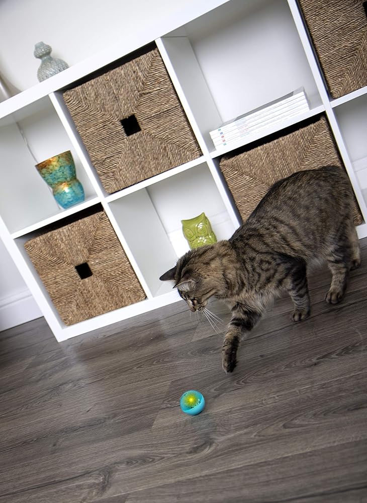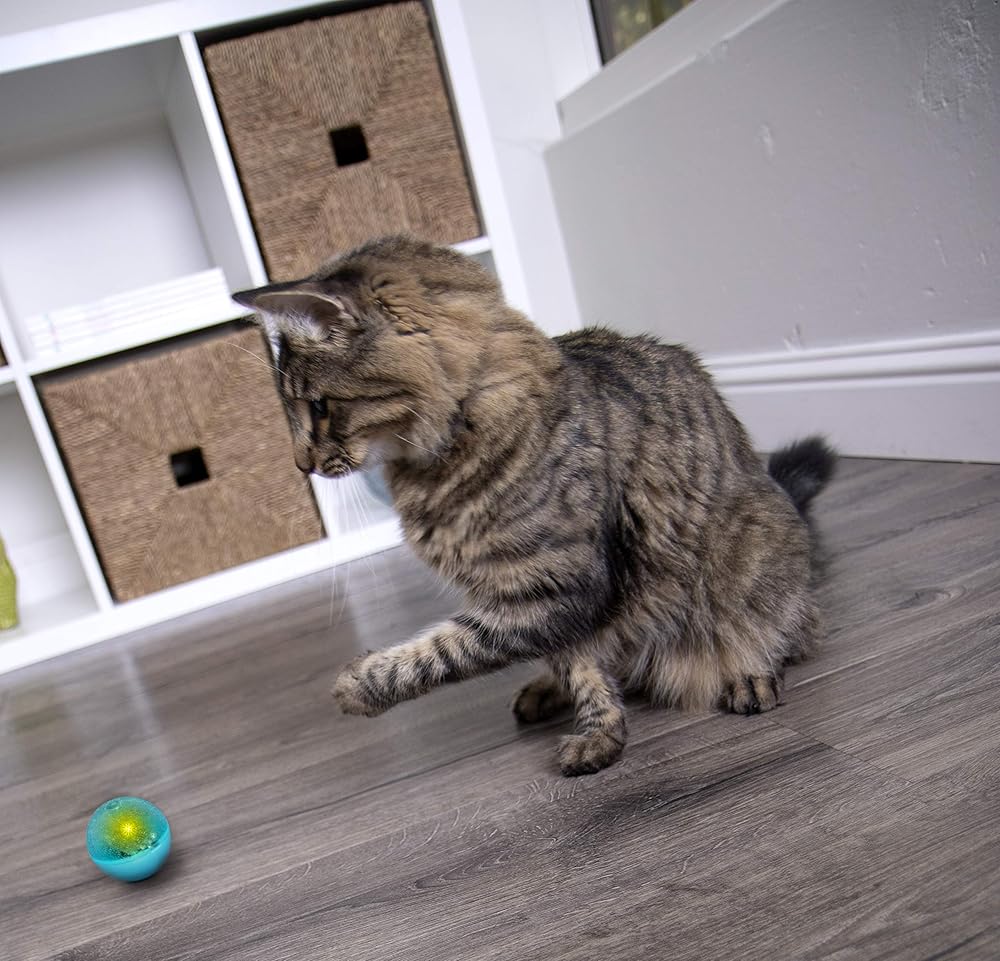 TOUCH-ACTIVATED: The ball toy lights up when touched, and flickers unpredictably with each swat of the paw; attracts cats with its blinking light, keeping them engaged and entertained during play