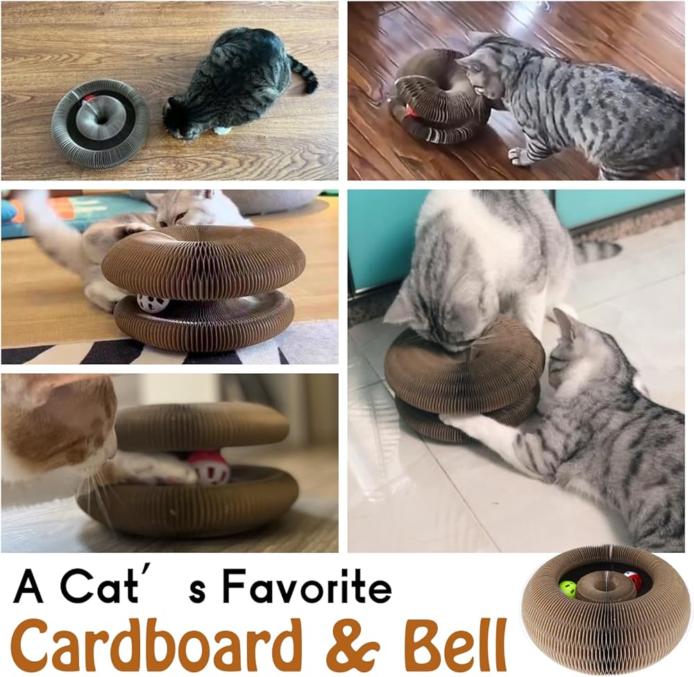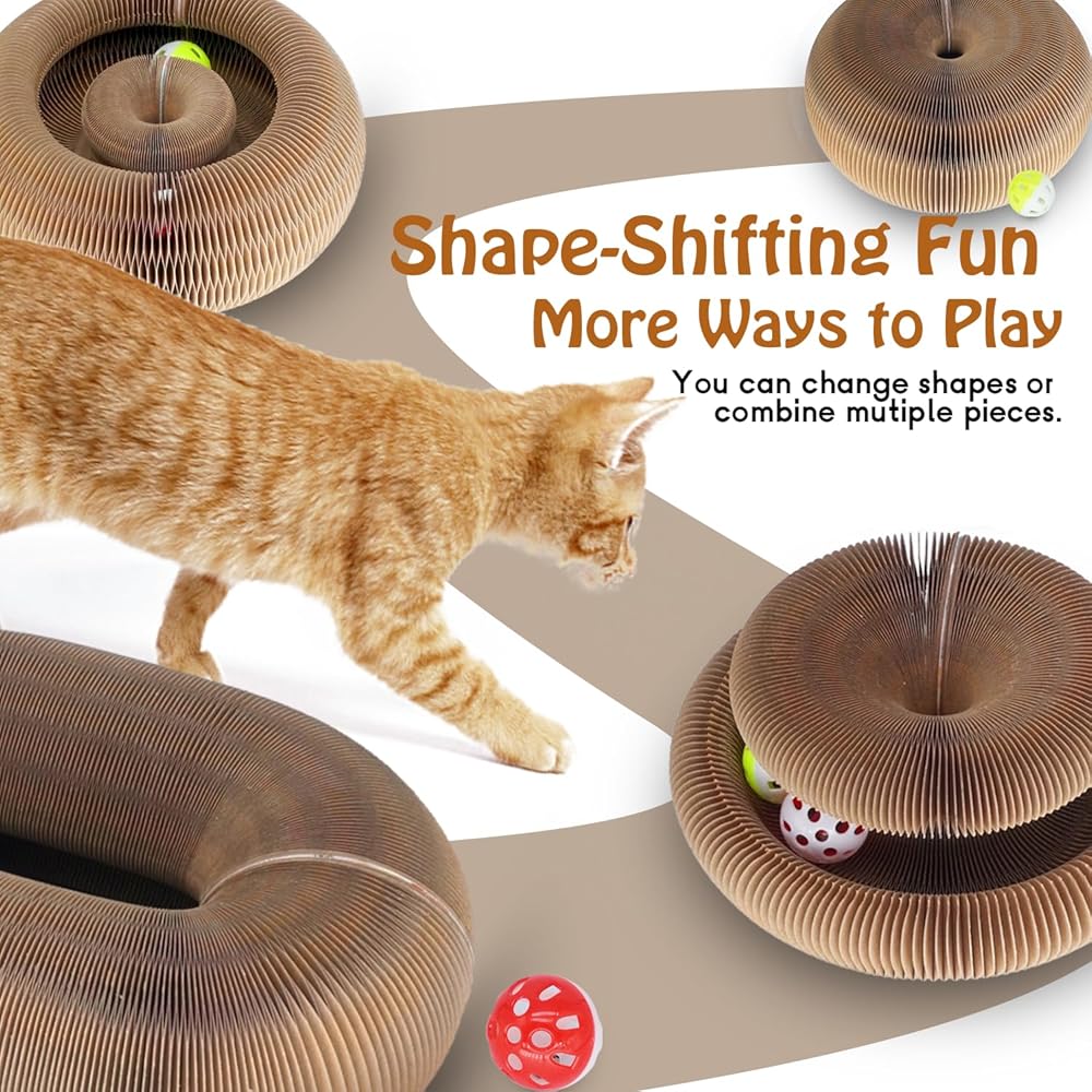 Idea from cat's nature of chasing, hunting and scratching, we designed this cardboard cat toy- Magic Organ. Changeable shapes, bell ball, cats' favorite cardboard, no cat can resist this temptation