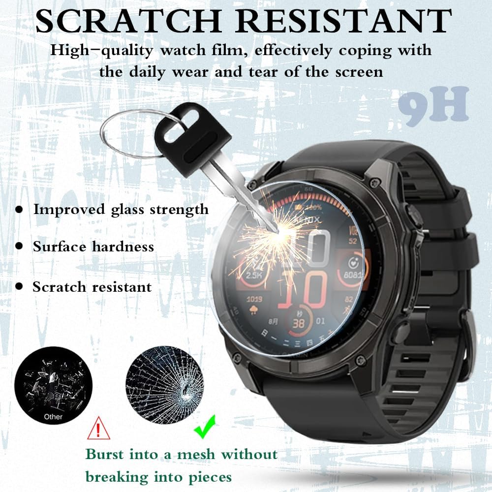 Watch screen protector Compatible for Garmin Fenix 8 51mm, tempered film super hardness to effectively protect your smart watch, ultra-high transparent tempered glass to effectively restore watch vision. The protective film is easy to handle and is sensitive to touch. Also equipped with 1 TPU protective case. Is a good protection tool.