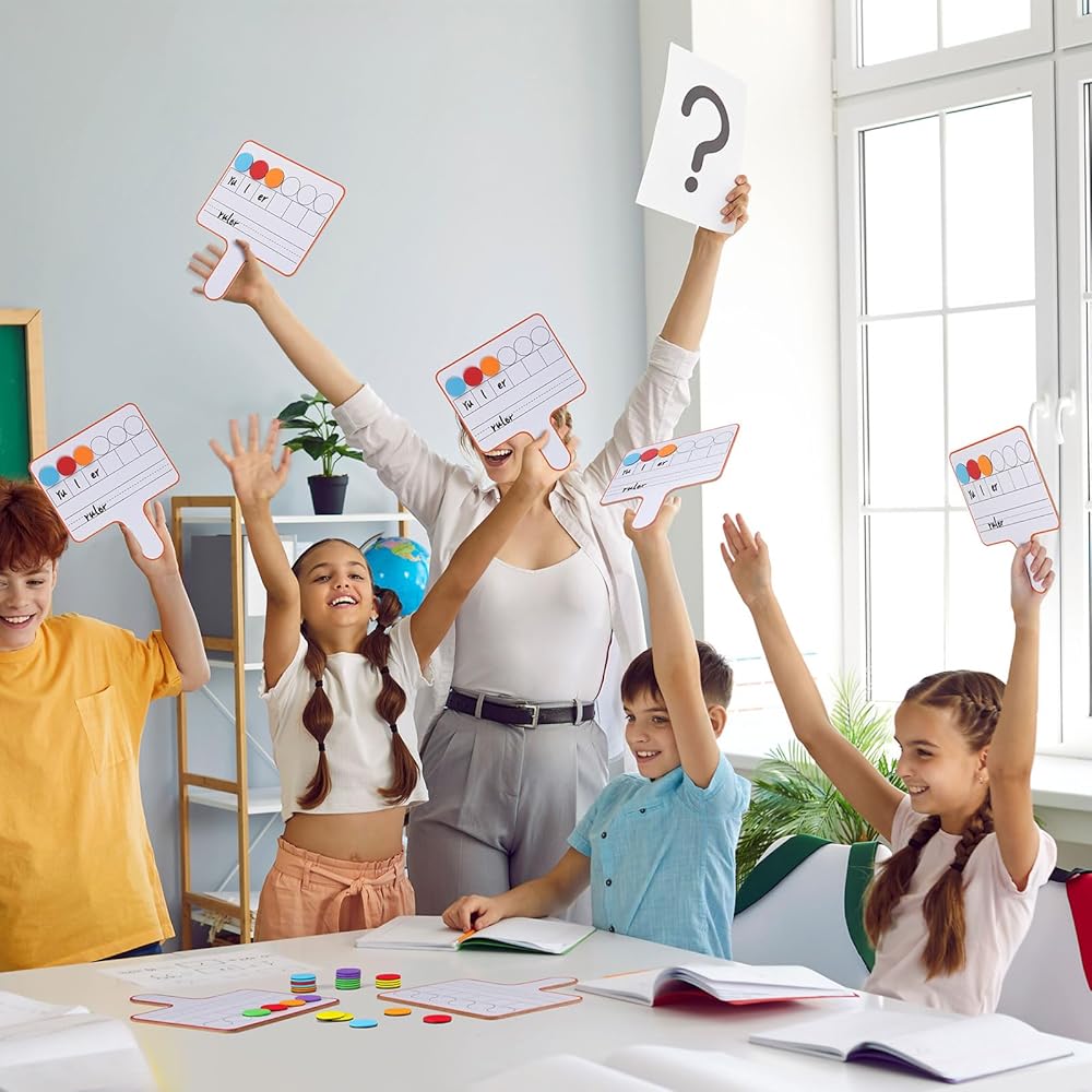 What You Get: you will get 6 pcs double side magnetic paddles for phoneme manipulation and 36 pieces of magnetic foam disk teaching aids; answer paddles set are reusable and lightweight, ideal for using in class