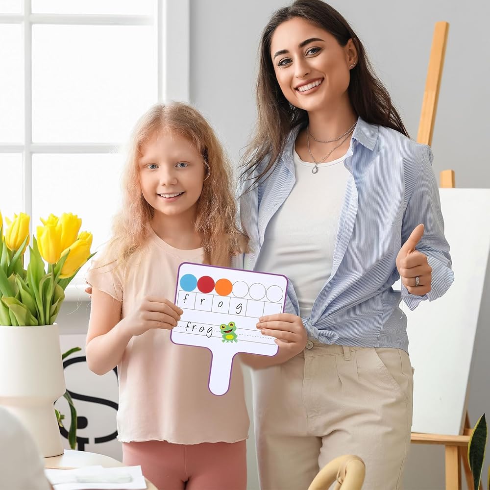 Build Awareness of Phonemic: these answer paddles for kids will help children to build phonemic awareness by pronouncing target word slowly and saying each sound, and guide them to pick the disc into the printed cells; Good for mapping words and education