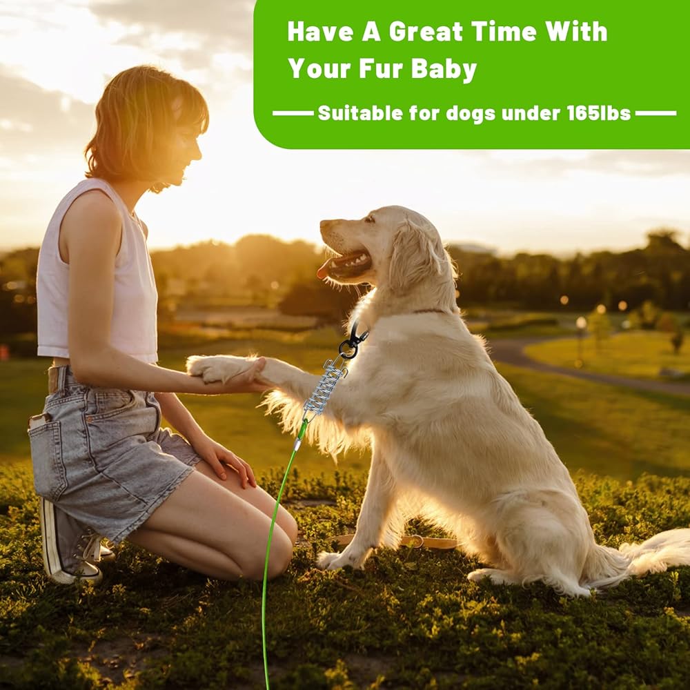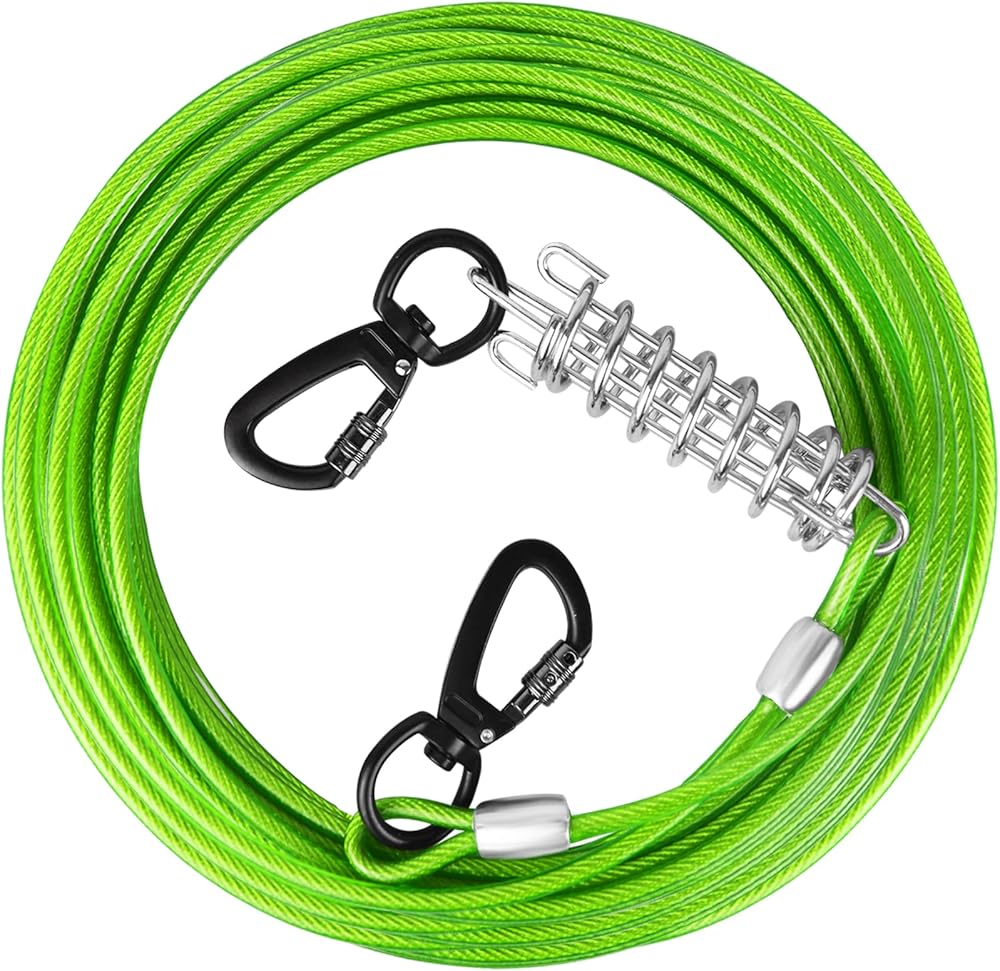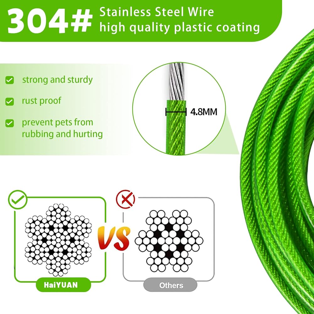 Dog Tie Out Cable 10/15/20/25/30 FT Runner for Yard Steel Wire With Durable Superior Clips Green Chains Heavy Duty for Outside Hold Large Dogs Up to 165 lbs