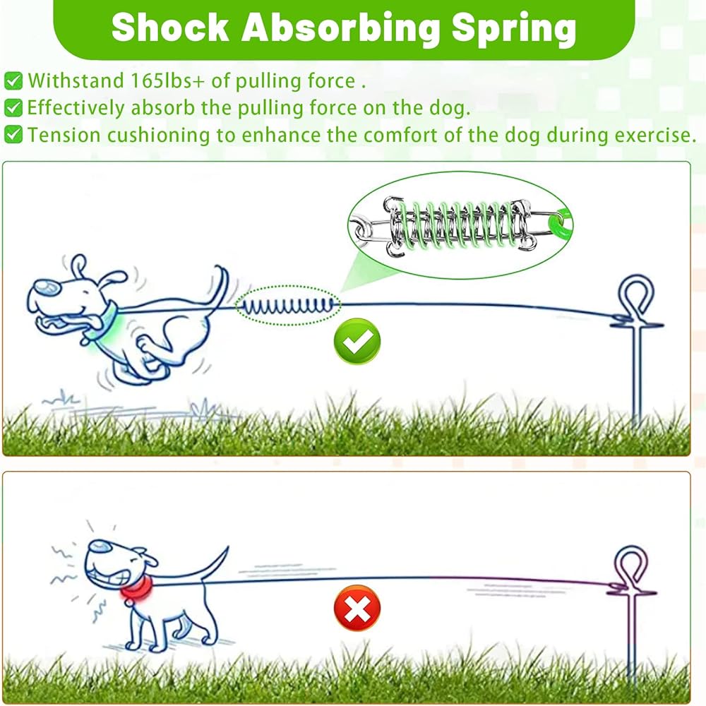BUFFER SPRING: A buffer spring is installed at one end of the cable, which can cushion the pulling force of the dog when it runs fast, reduce the damage to the dog's neck and body, and provide a more comfortable playing environment for the dog.
