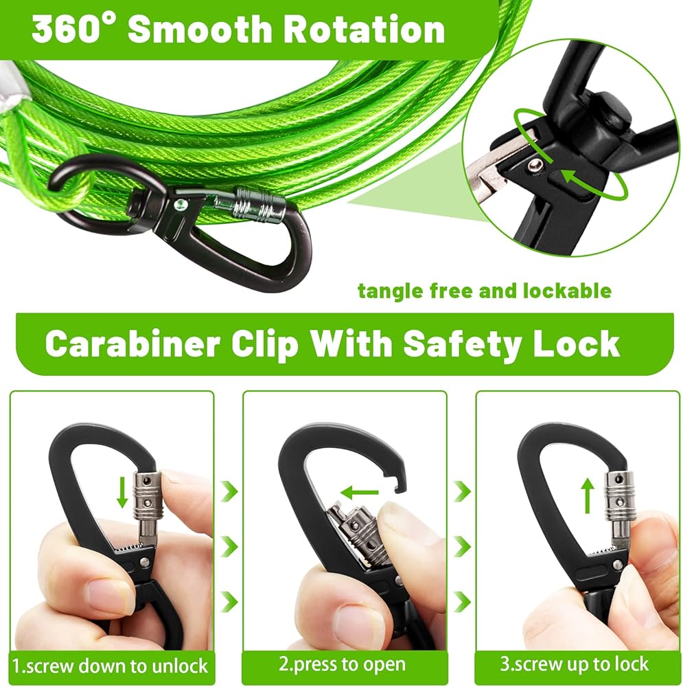 ADVANCED CLIP: The swivel clip rotates 360° to provide more room for your dog to move around without getting tangled up. A screw on the swivel hook locks it in place to prevent your pet from breaking free of the cable and running into harm's way.