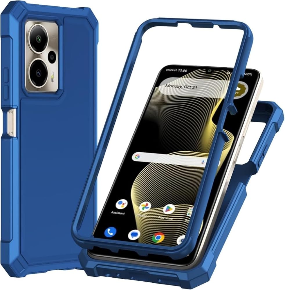 for Cricket Outlast 5G 2024 Case with Screen Protector,Full Body Protection Front PC Back Soft Silicone Bumper,Heavy Duty Protection Shockproof Phone Case for ATT Motivate Pro 5G Blue